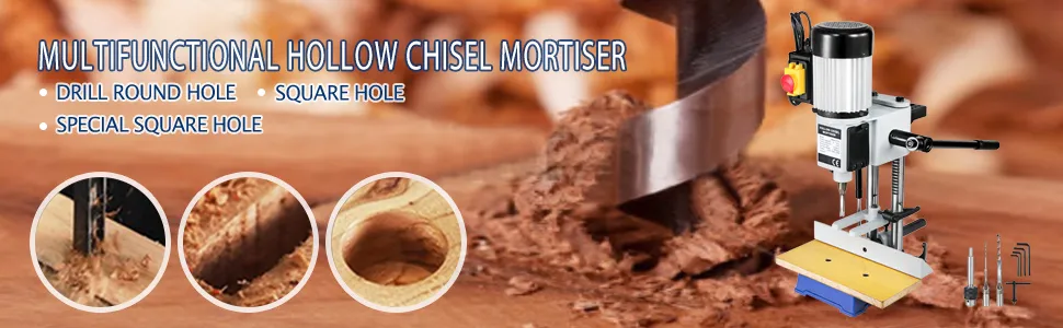 Model MS36127A3 váži iba 60 kg a je vyrobený z liatiny a ocele. Je robustný a ľahko sa s ním manipuluje. Sekáč sa dodáva so štandardným trojčeľusťovým držiakom kľúča na bezpečné uchytenie dláta. Má tiež rýchlo nastaviteľný obmedzovač hĺbky a odnímateľný prepínač, ktorý zabraňuje náhodnému alebo neoprávnenému použitiu nástroja. Tento stroj na štvorcové čapy sa ľahko inštaluje a čistí. Je to multifunkčný stroj na duté dláta, ktorý si zaslúžite.