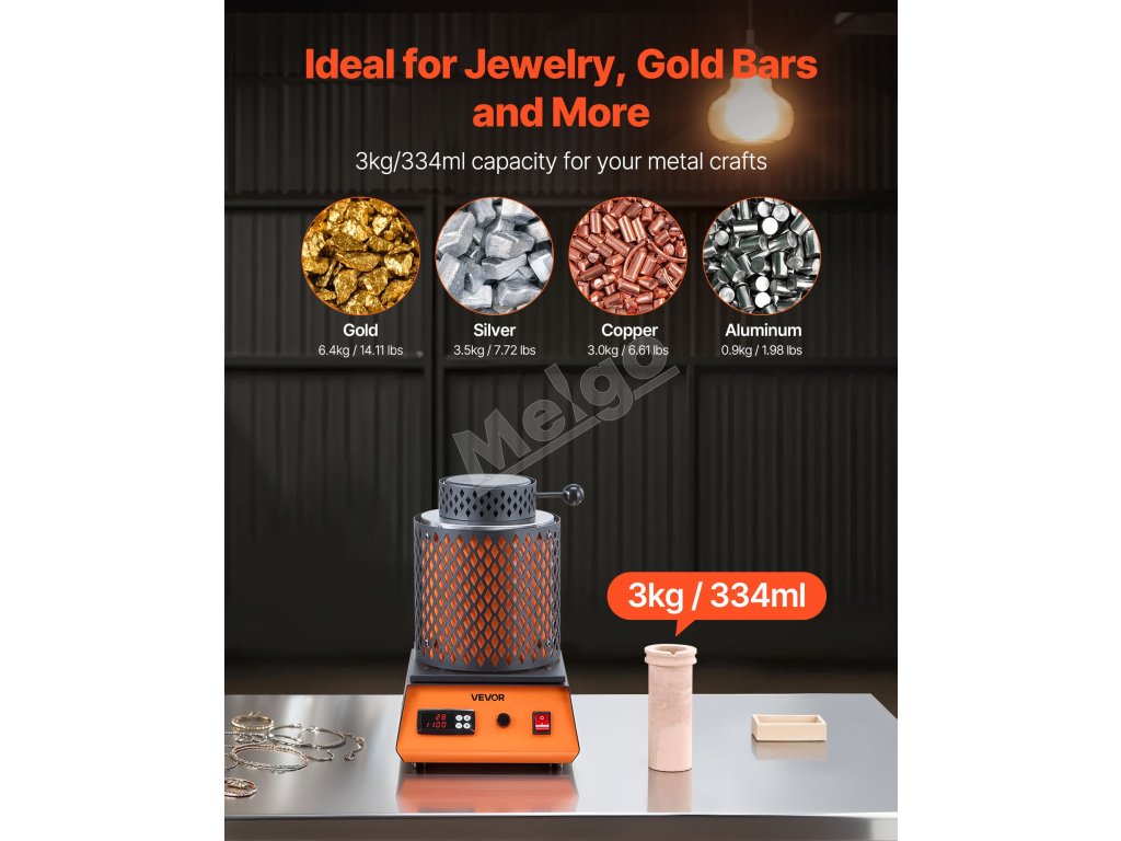 Elektrická pec na tavenie kovov 1350W 1150℃ 3kg keramický tygel