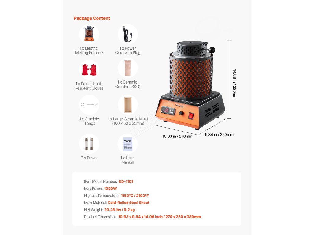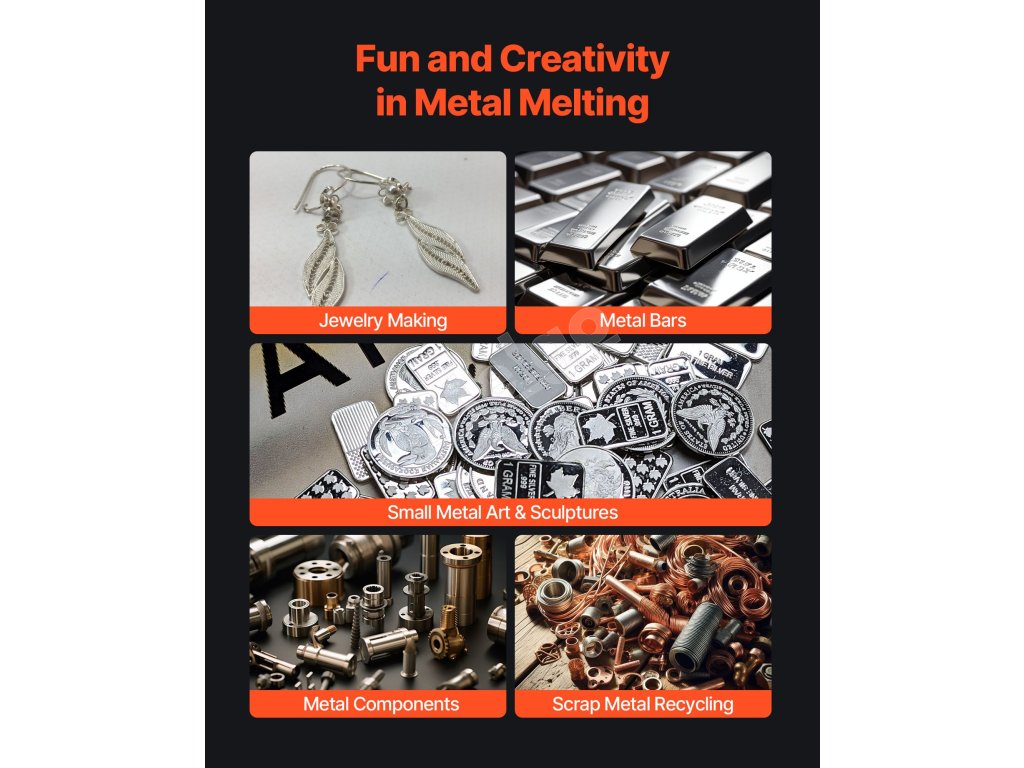 Elektrická taviaca pec s výkonom 1350 W má kompaktné rozmery a ľahkú konštrukciu, vďaka čomu ju možno ľahko umiestniť a premiestňovať v domácich štúdiách alebo malých dielňach. Jej prenosná konštrukcia umožňuje používateľom pohodlne vytvárať šperky, umelecké alebo kovové projekty bez toho, aby zaberala príliš veľa miesta.