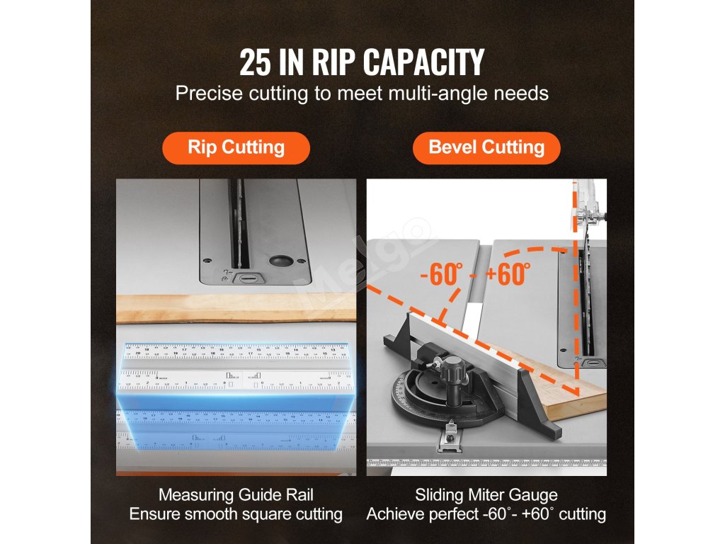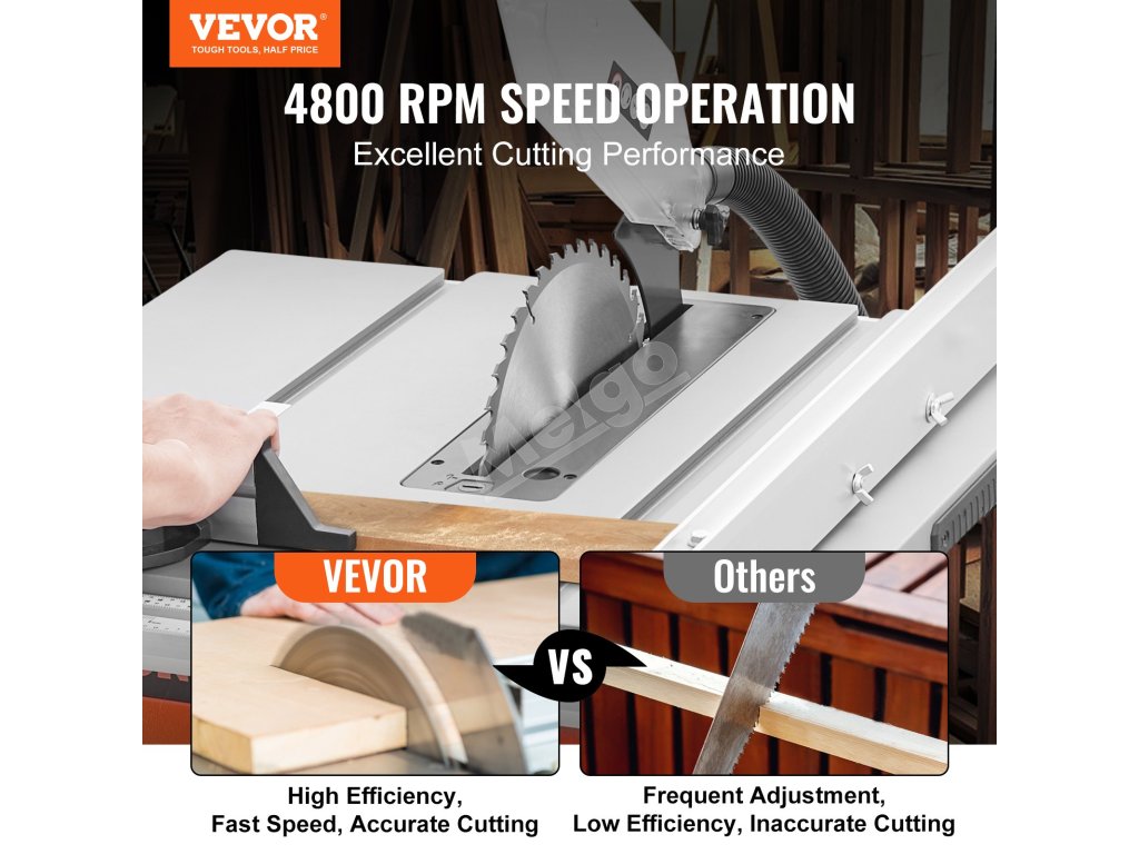 Naša stolová píla je vybavená 8 A motorom na rezanie všetkých druhov dreva pri 4800 otáčkach za minútu. Vďaka 25-palcovému podrezávaciemu výkonu ľahko pretrhne veľké rezivo. Či už potrebujete pracovať vonku, vyrábať nábytok v dielni, alebo sa zaujímate o prácu s drevom pre domácich majstrov, VEVOR je ten, ktorému môžete dôverovať.