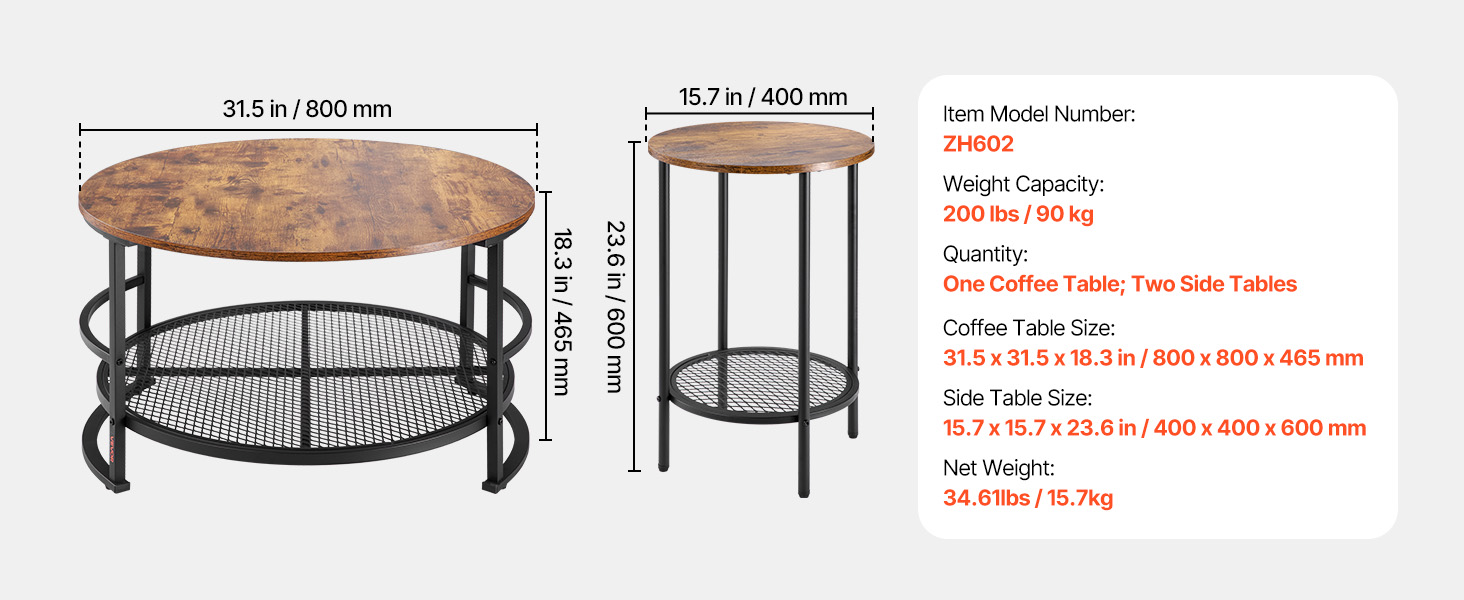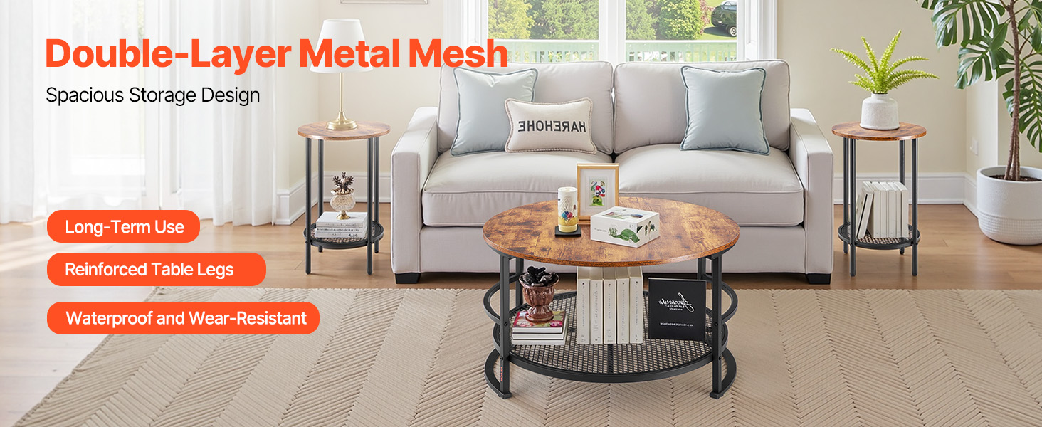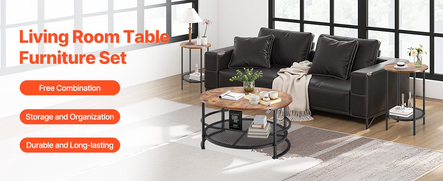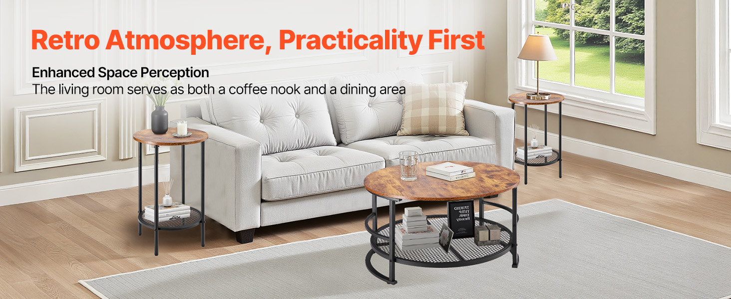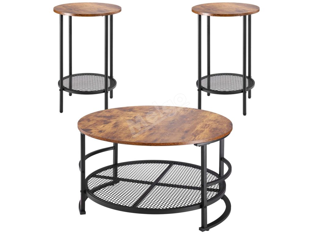 Táto súprava konferenčného a koncového stolíka vytvára vintage lesk, ktorý dopĺňa rôzne štýly bytového zariadenia. Je funkčná a zároveň všestranná, takže sa bez problémov začlení do vášho obytného priestoru.