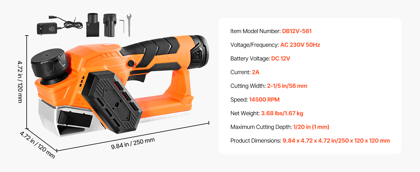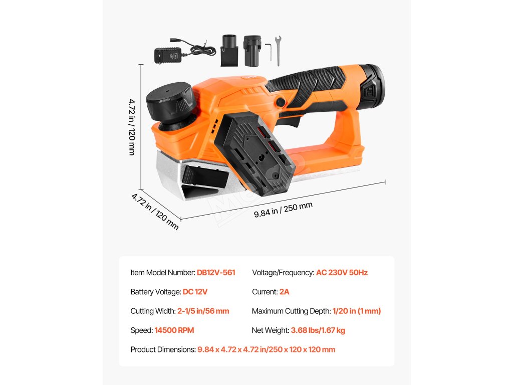 Aku ručný hoblík 56 mm, 14500 RPM, 12V 2 Ah, bezkefkový, 2 nože