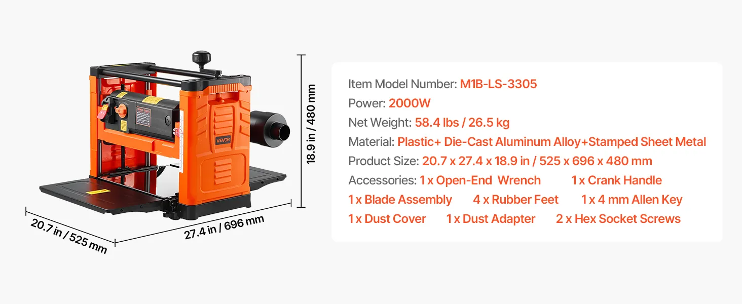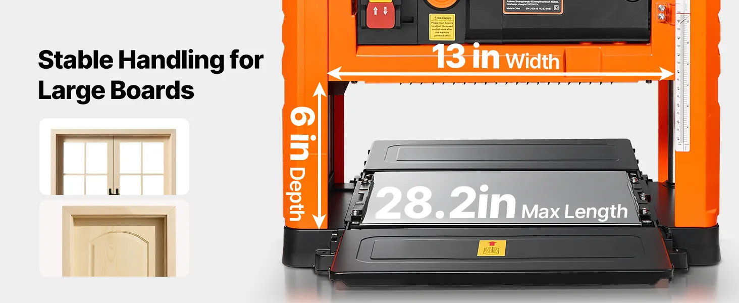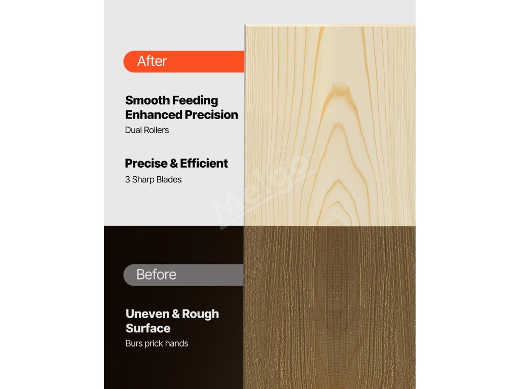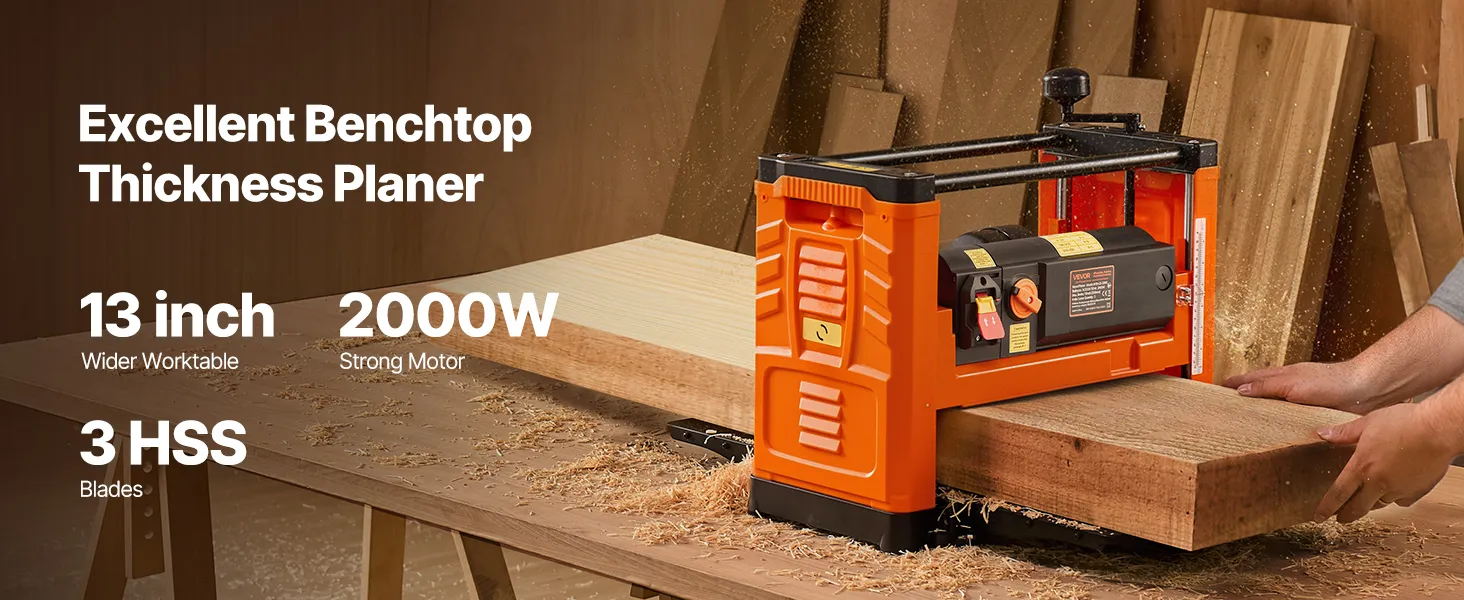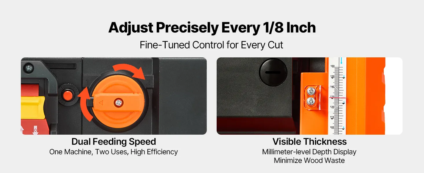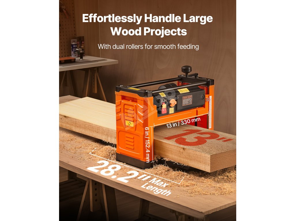 Určené pre domácich majstrov a malé dielne. Tento hoblík na drevo je vybavený dvojvalcovým systémom posuvu, dvoma rýchlosťami posuvu, výkonným motorom, presnou reguláciou hĺbky 1/8 palca a milimetrovou presnosťou, vďaka čomu si ľahko poradí s hrubým tvrdým drevom. Zabudované prachové otvory udržujú váš priestor čistý.