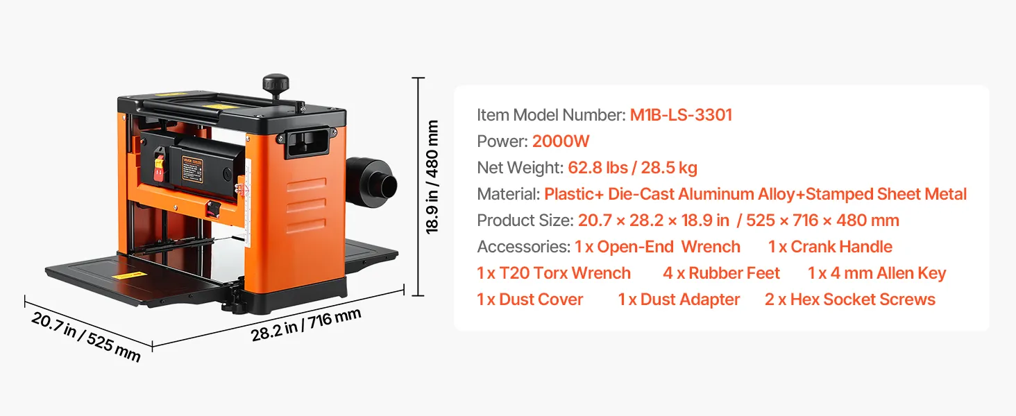 Určené pre domácich majstrov a malé dielne. Tento drevoobrábací hoblík má dvojvalcový systém posuvu, výkonný motor, 1/8-palcovú presnú reguláciu hĺbky a milimetrovú presnosť. Zabezpečuje hladšie rezy a ľahko si poradí s hrubým tvrdým drevom. Zabudované prachové otvory udržia váš priestor čistý.