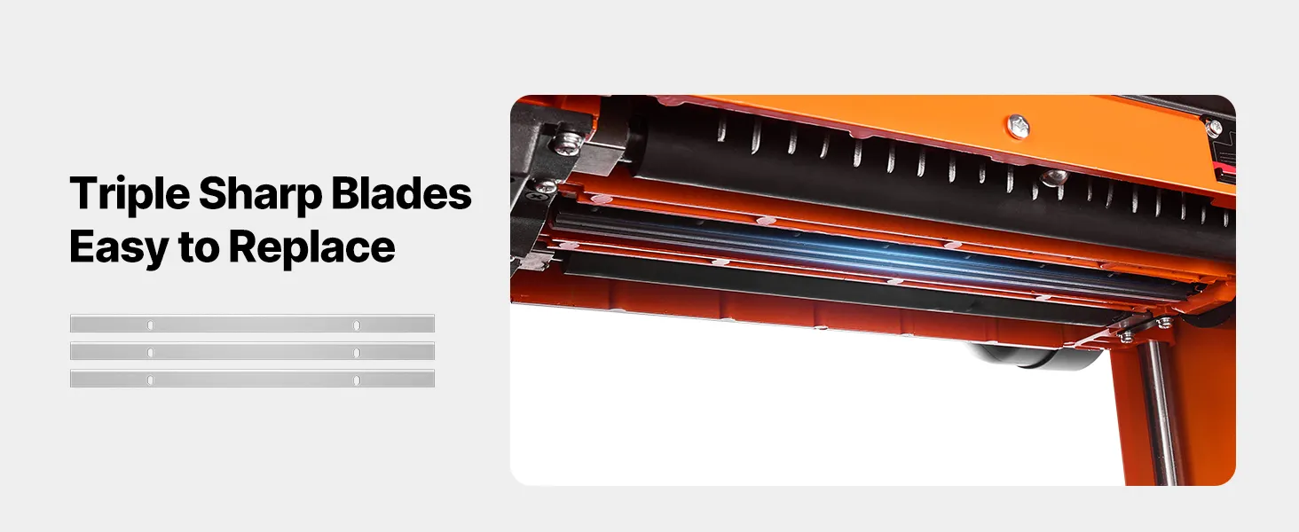 Odpoveď: Hoblík je vybavený dvojitými valcami na vstupných/výstupných otvoroch na stabilné podávanie. Zabezpečuje, aby bol pracovný stôl počas používania vodorovný, alebo pred/za projektové dosky pridajte obetné odrezky.