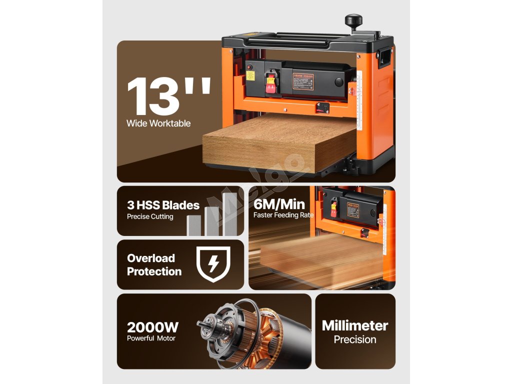 Určené pre domácich majstrov a malé dielne. Tento drevoobrábací hoblík má dvojvalcový systém posuvu, výkonný motor, 1/8-palcovú presnú reguláciu hĺbky a milimetrovú presnosť. Zabezpečuje hladšie rezy a ľahko si poradí s hrubým tvrdým drevom. Zabudované prachové otvory udržia váš priestor čistý.