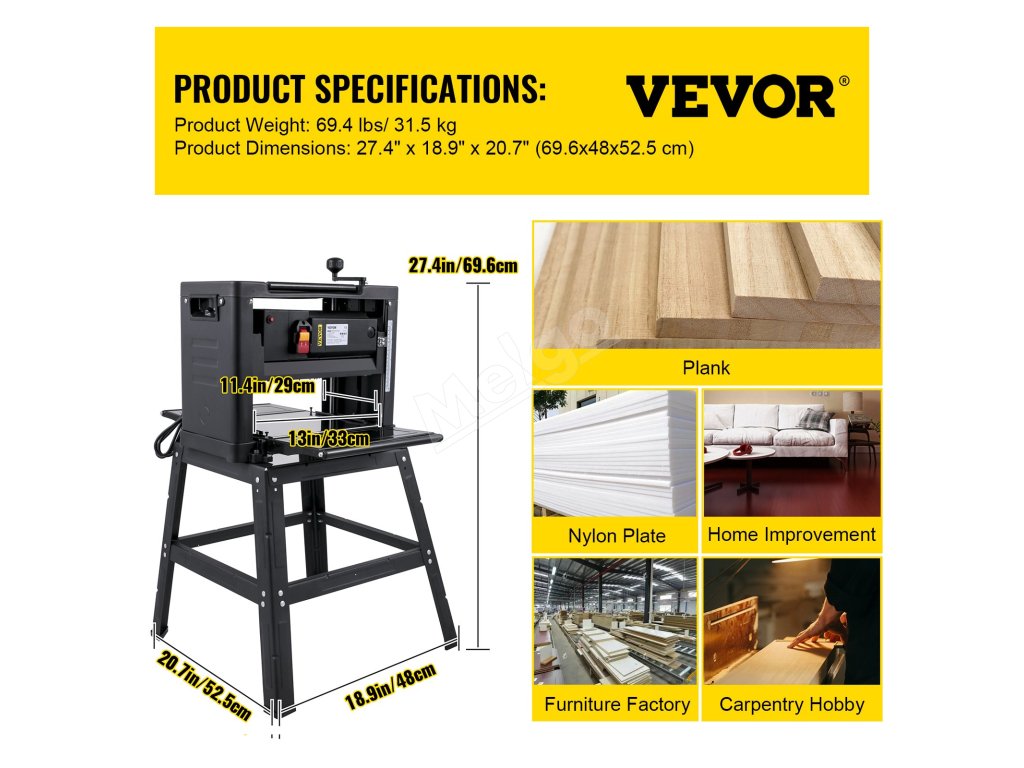 Maximálna šírka rezu: 13" (330 mm). S hladkým a odolným povrchom stola, ktorý dokáže znížiť poškodenie povrchu materiálu. Valec sa automaticky posúva, nie je potrebné ručne posúvať materiál, čo zvyšuje efektivitu vašej práce.