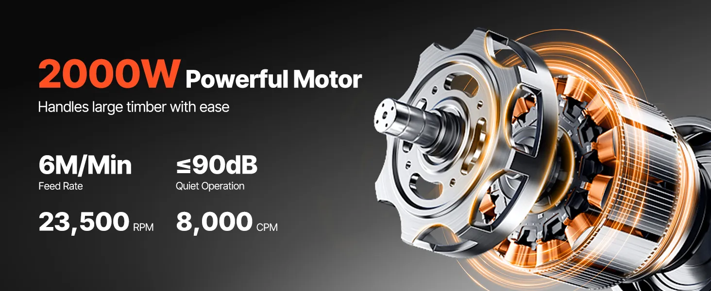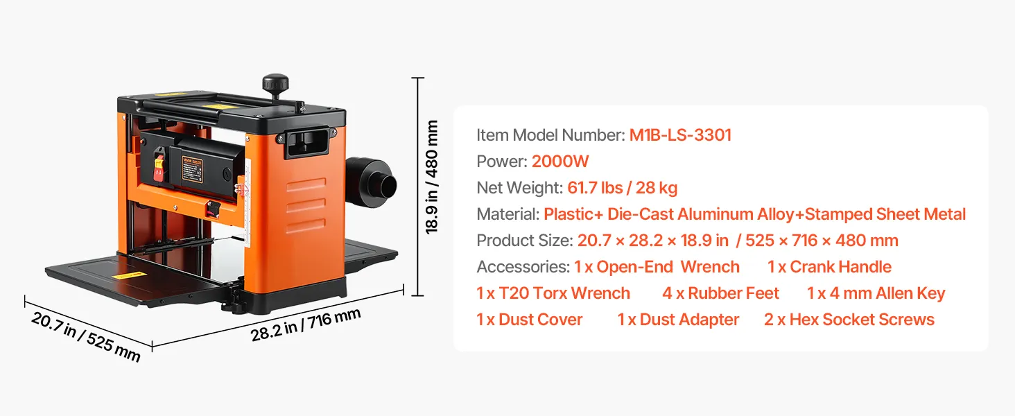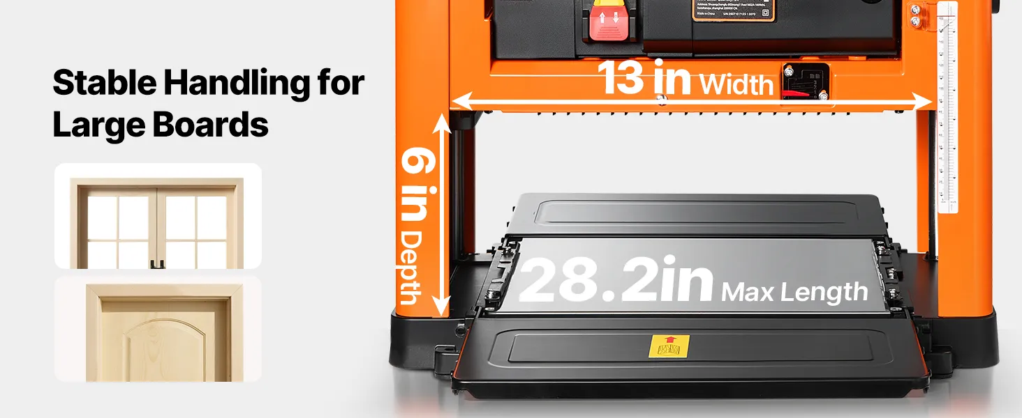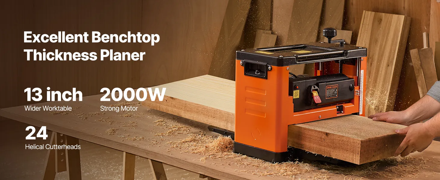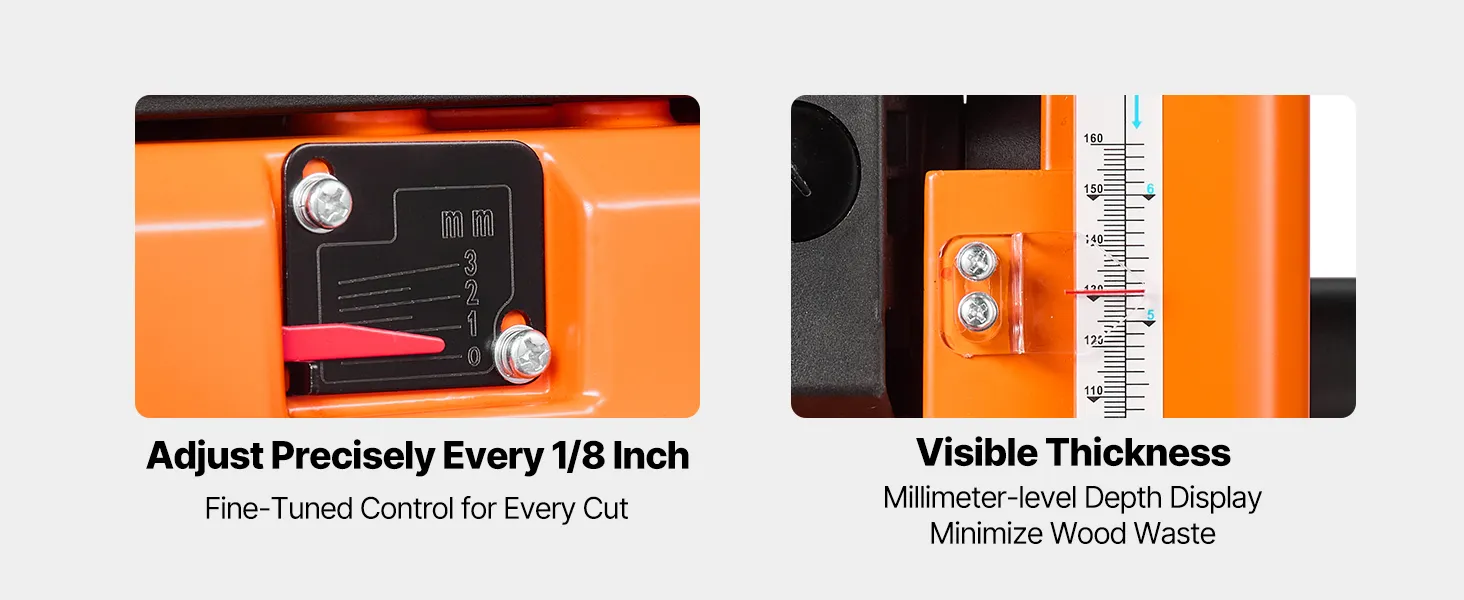 Určené pre domácich majstrov a malé dielne. Tento hoblík na opracovanie dreva má dvojvalcový systém posuvu, výkonný motor, 24 špirálových nožov zo zliatiny, 1/8-palcovú presnú reguláciu hĺbky a milimetrovú presnosť. Ľahko si poradí s hrubým tvrdým drevom. Zabudované prachové otvory udržia váš priestor čistý.