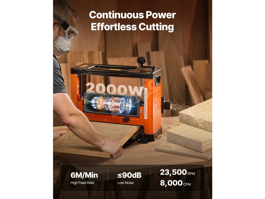 Stolový hoblík na hrúbku 330 mm, 2000 w, 23500 rpm, 24 vložiek