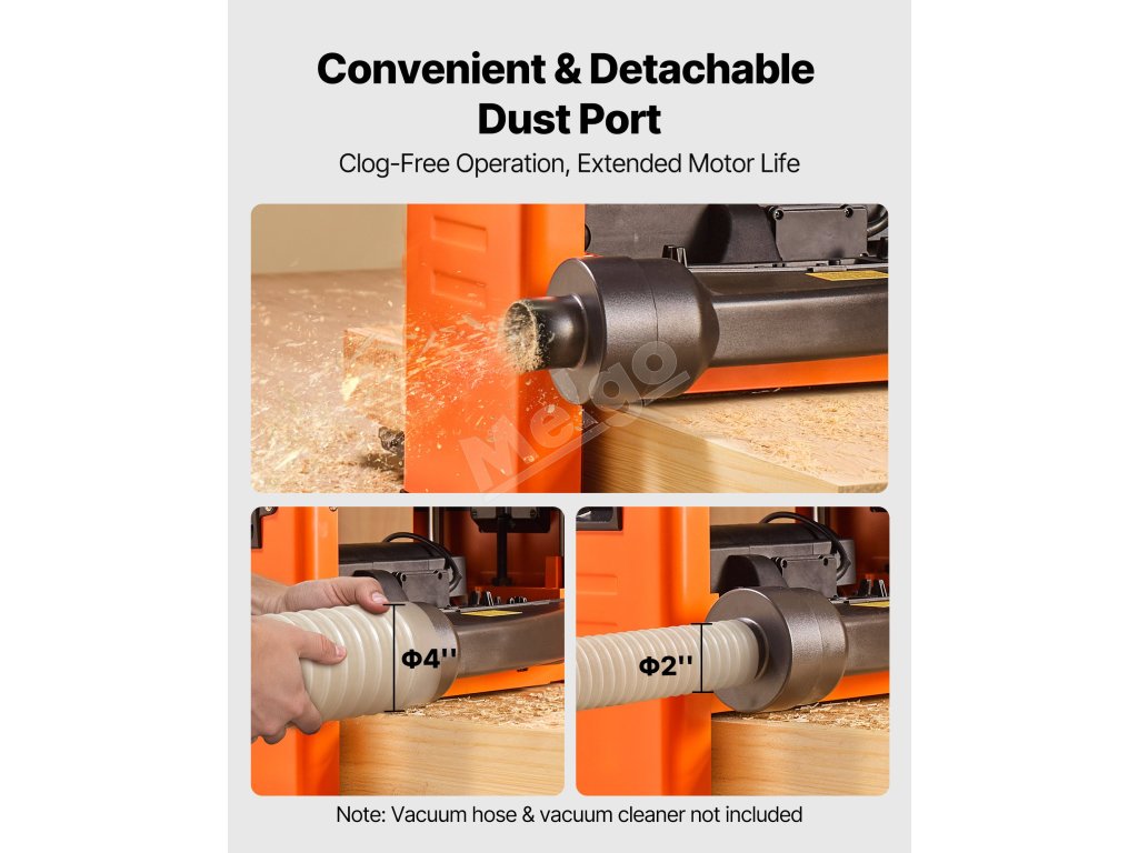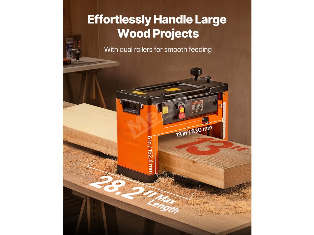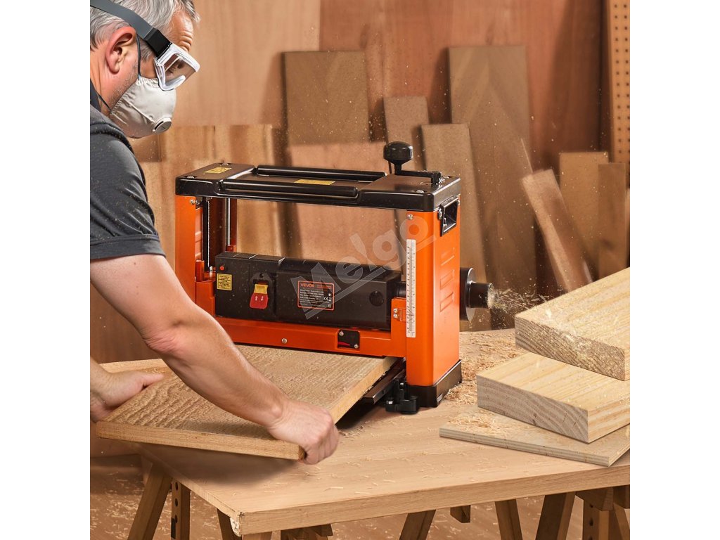 Určené pre domácich majstrov a malé dielne. Tento hoblík na opracovanie dreva má dvojvalcový systém posuvu, výkonný motor, 24 špirálových nožov zo zliatiny, 1/8-palcovú presnú reguláciu hĺbky a milimetrovú presnosť. Ľahko si poradí s hrubým tvrdým drevom. Zabudované prachové otvory udržia váš priestor čistý.