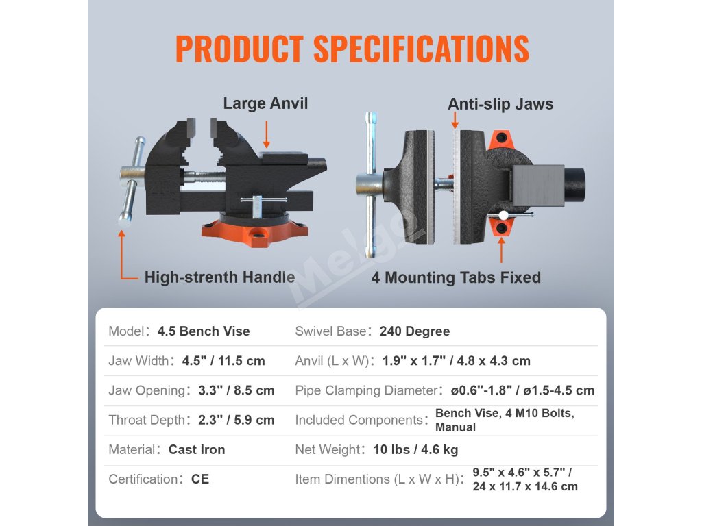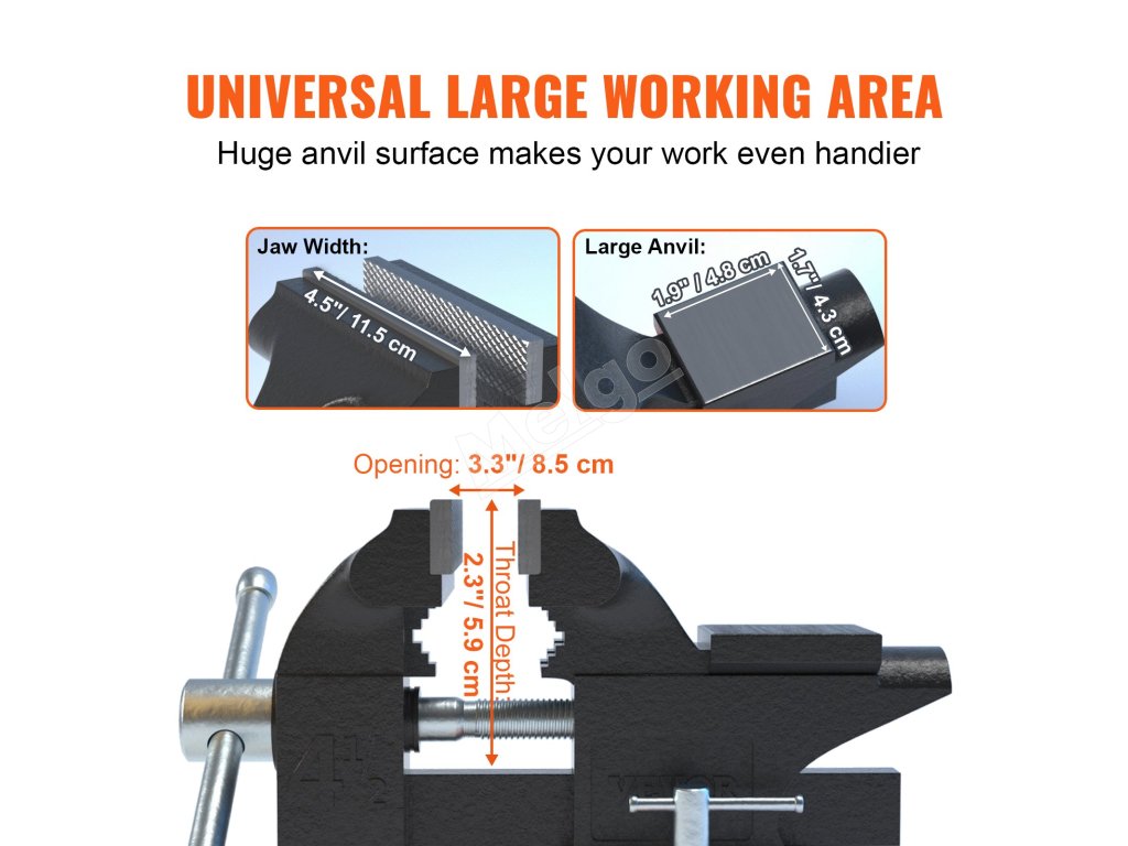 Stolový zverák VEVOR s priemerom 4,5 palca ponúka skvelú hodnotu. Spája v sebe vynikajúcu kvalitu s prijateľnou cenou. Získate robustné a spoľahlivé náradie bez toho, aby ste museli preplatiť banku. Prijateľná cena neohrozuje jeho konštrukciu. Tento zverák je vyrobený z vysokokvalitných materiálov. Tieto zveráky sú navrhnuté tak, aby vydržali. Za rozumnú cenu získate vynikajúci výkon. Môžu si ju dovoliť kupujúci, ktorí sú nároční na rozpočet. Do tohto podniku teda môžete investovať bez finančnej záťaže. Pre každého remeselníka je vďaka veľkej hodnote výnimočným výrobkom.