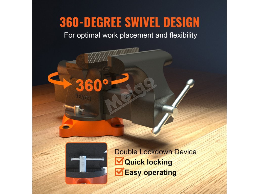Táto funkcia zvyšuje presnosť a flexibilitu vašej práce. Zverák môžete ľahko nastaviť do akéhokoľvek uhla, ktorý potrebujete. To umožňuje väčšiu presnosť a jednoduchosť používania. 360-stupňová otočná základňa stolového zveráka je ideálna pre zložité projekty. Pomáha vám pracovať efektívnejšie a účinnejšie. Základňu je možné uzamknúť pre väčšiu stabilitu, takže zverák zostane v požadovanej polohe. Je 360-stupňová otočná základňa skvelou funkciou? Áno! Náš 6-palcový stolový zverák má 360-stupňovú otočnú základňu, vďaka ktorej je univerzálny na rôzne úlohy.