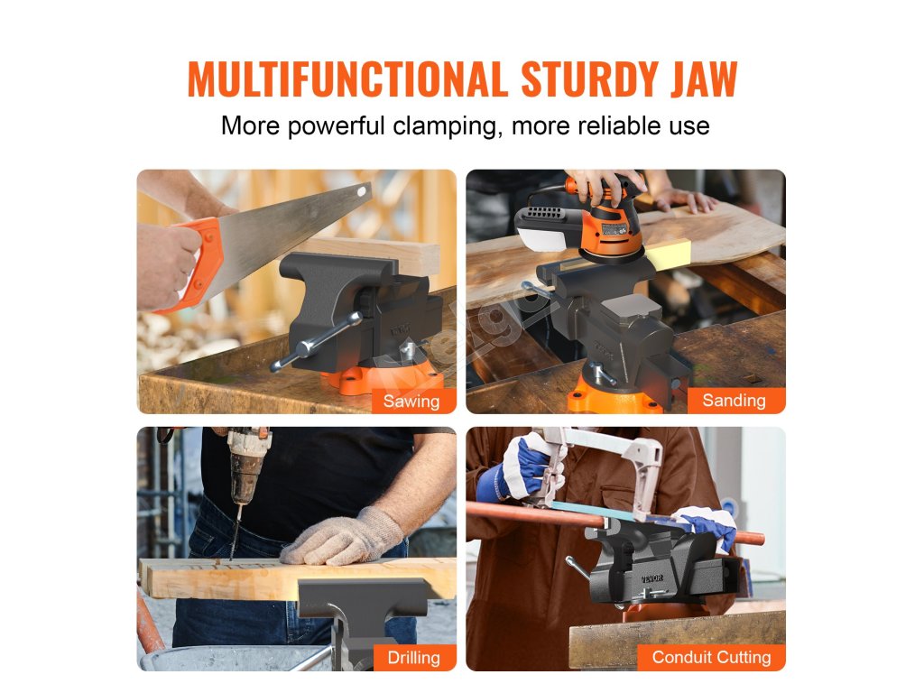 Toto je skvelý doplnok do vašej dielne. Stolový zverák VEVOR s priemerom 6 palcov disponuje funkciou viacerých čeľustí. Je ideálny na ploché aj rúrkové obrobky. Tieto čeľuste dokážu bezpečne uchytiť rôzne materiály, vďaka čomu je zverák univerzálny a zároveň prispôsobivý. Môžete s ním manipulovať s rôznymi tvarmi a veľkosťami. Je vhodný na obrábanie dreva, kovov alebo na iné účely? Áno, náš zverák sa dá použiť na všetky druhy projektov. Funkcia viacerých čeľustí dodáva vašim projektom pohodlie. Vďaka tejto funkcii môžete ľahko prepínať medzi úlohami. Naše čeľuste sú vymeniteľné, čo zaručuje dlhodobé používanie. Vďaka tejto funkcii je zverák neuveriteľne užitočný.