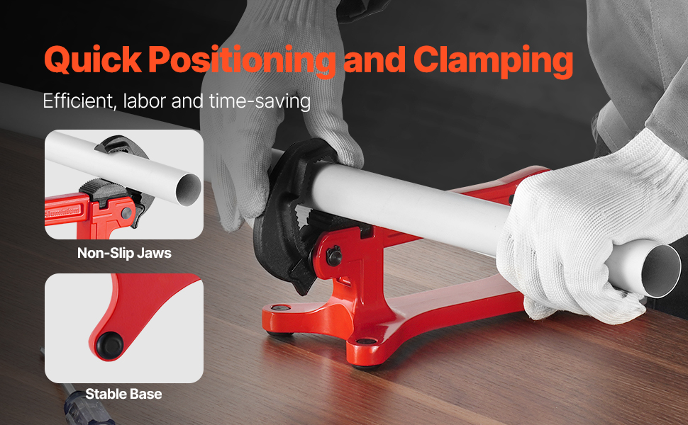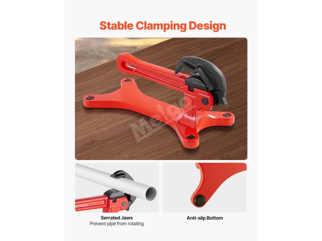 Vďaka protišmykovým, stabilným čeľustiam a protišmykovému dnu s gumovými podložkami tento zverák na rúry bezpečne drží rúru na mieste, čím šetrí čas a námahu a zefektívňuje vašu prácu.