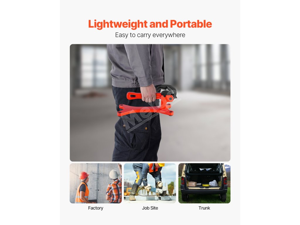 Náš prenosný zverák na rúry má telo z hliníkovej zliatiny odolné proti korózii a čeľuste z vysokopevnostnej ocele, ktoré ponúkajú spoľahlivú odolnosť a stabilitu.