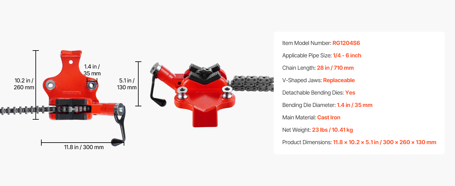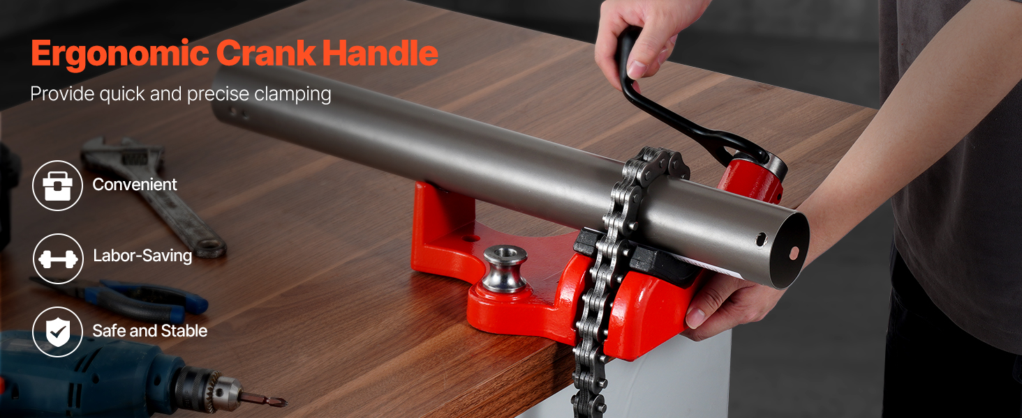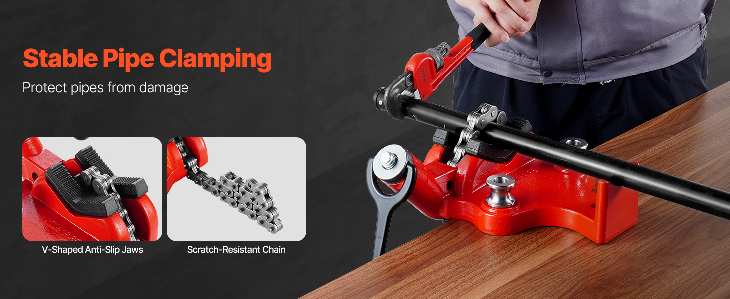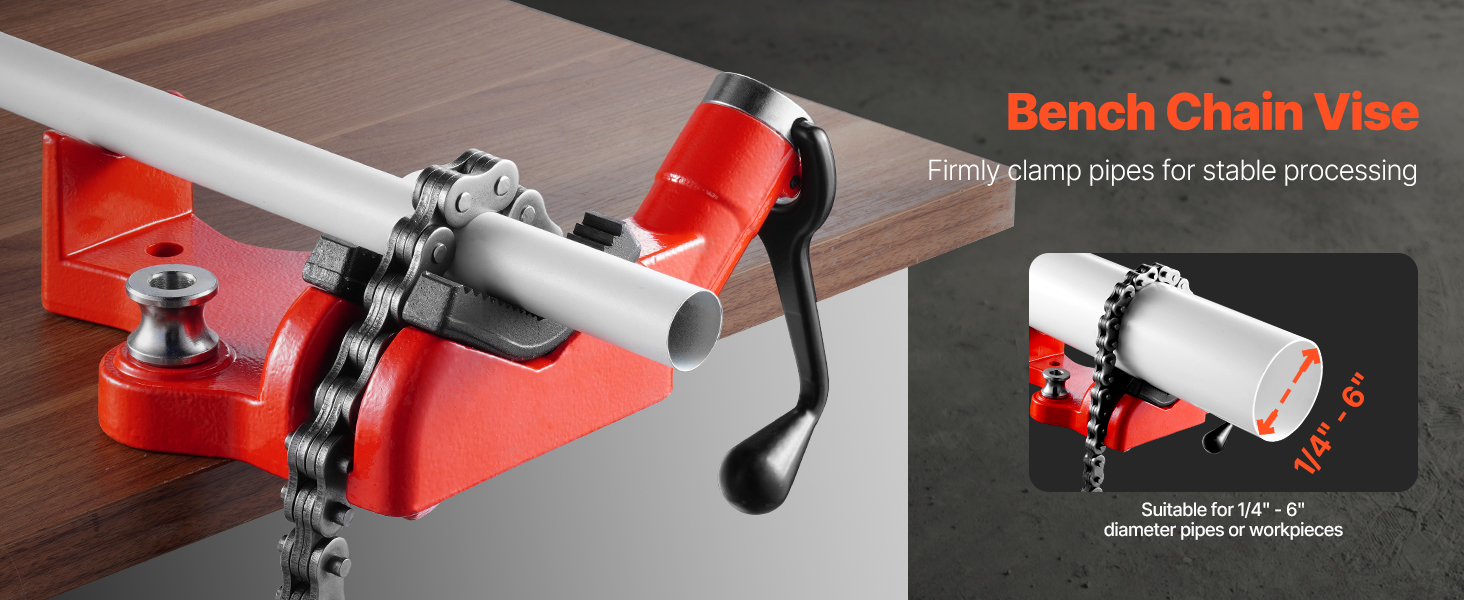 Stolový reťazový zverák s 28-palcovou dĺžkou reťaze je navrhnutý na bezpečné upínanie rúr, čím zabezpečuje stabilitu a presnosť pri spracovaní rúr. Je vhodný na rúry alebo obrobky s priemerom od 1/4" do 6", ideálny na domáce opravy aj priemyselné projekty.