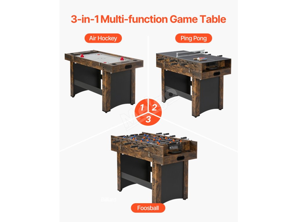 Herný stôl 3v1 54" air hockey, stolný tenis, futbalček pre domácnosť
