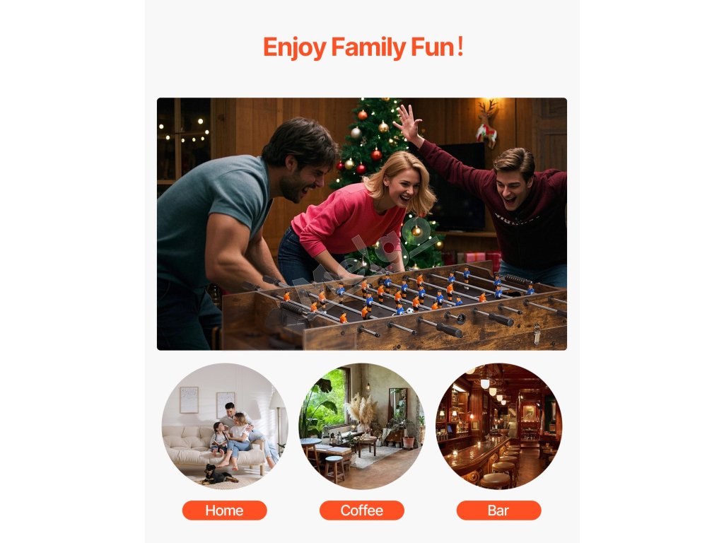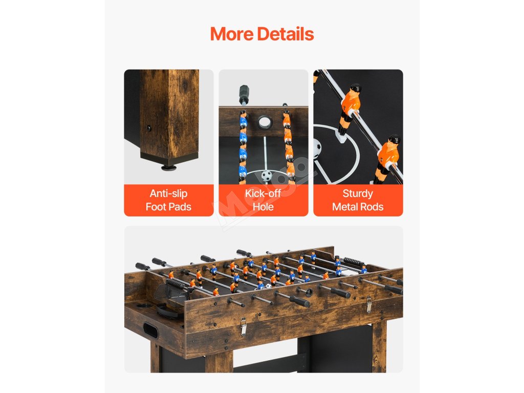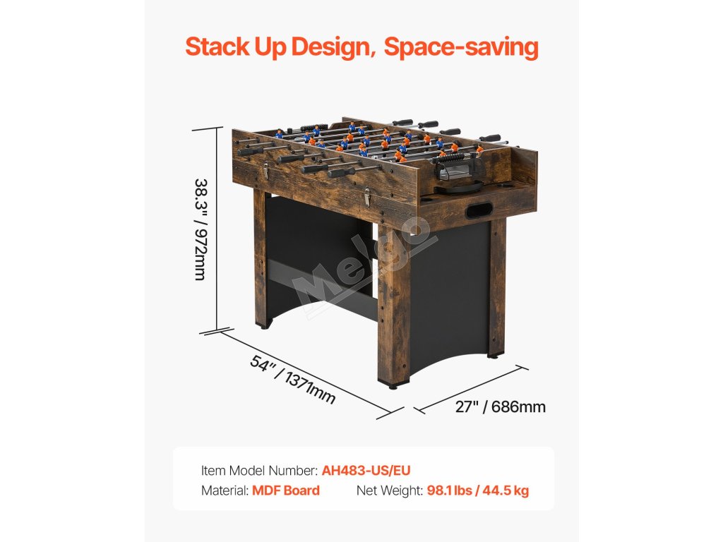 Tento multifunkčný herný stôl 3 v 1 spája air hockey, stolný futbal a stolný tenis do jedného cenovo dostupného stola, s ktorým zažijete hodiny rodinnej zábavy. Jeho kompaktný dizajn (54 × 27 × 38,3 palca / 137 × 68,6 × 97 cm) a skladacia konštrukcia bez námahy šetria miesto.