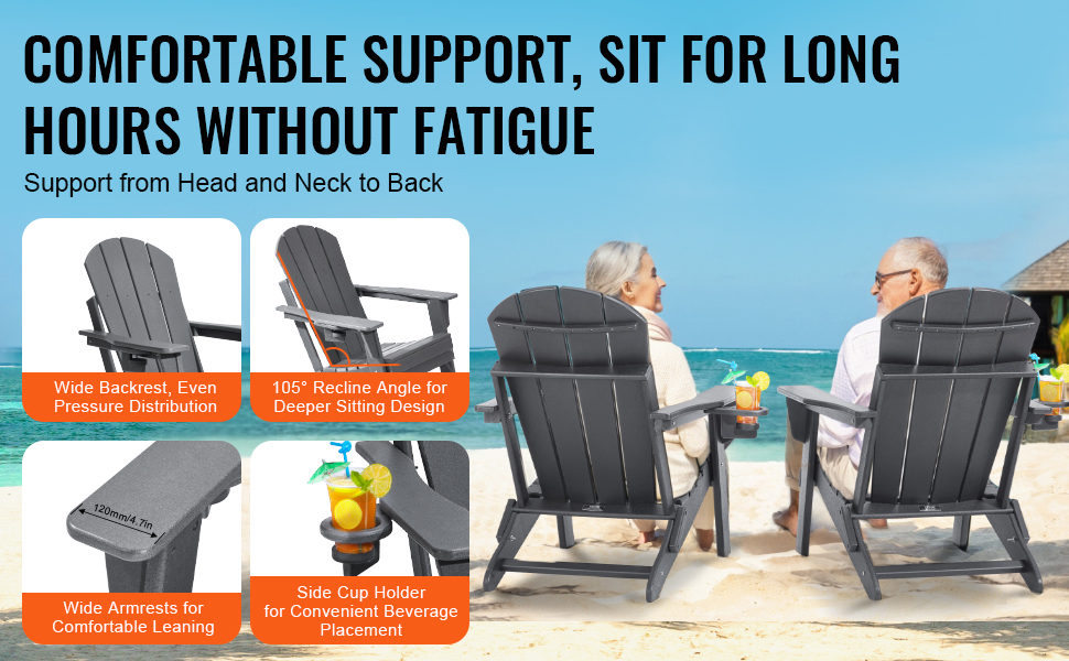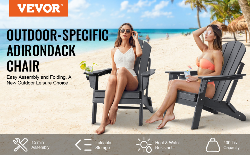 Naše kreslo Adirondack má skladací dizajn na jednoduché skladovanie. Montáž je rýchla a trvá len 15 minút pomocou elektrického skrutkovača. Je vyrobené z plastu HDPE, unesie až 400 kg a odolá slnku, dažďu aj vetru. Ideálne na terasy, záhrady a pláže.