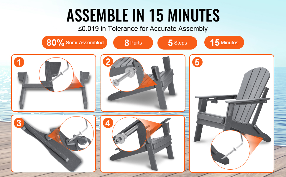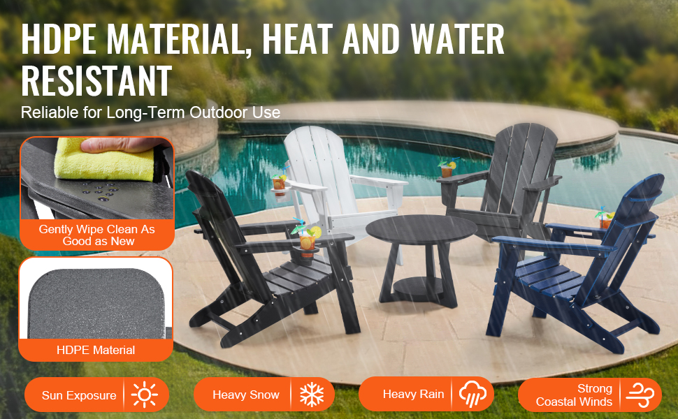 Toto kreslo sa zostaví len za 15 minút a má skladací dizajn na jednoduché skladovanie. Je vyrobená z vysokokvalitného plastu HDPE a je odolná na dlhodobé používanie v exteriéri.