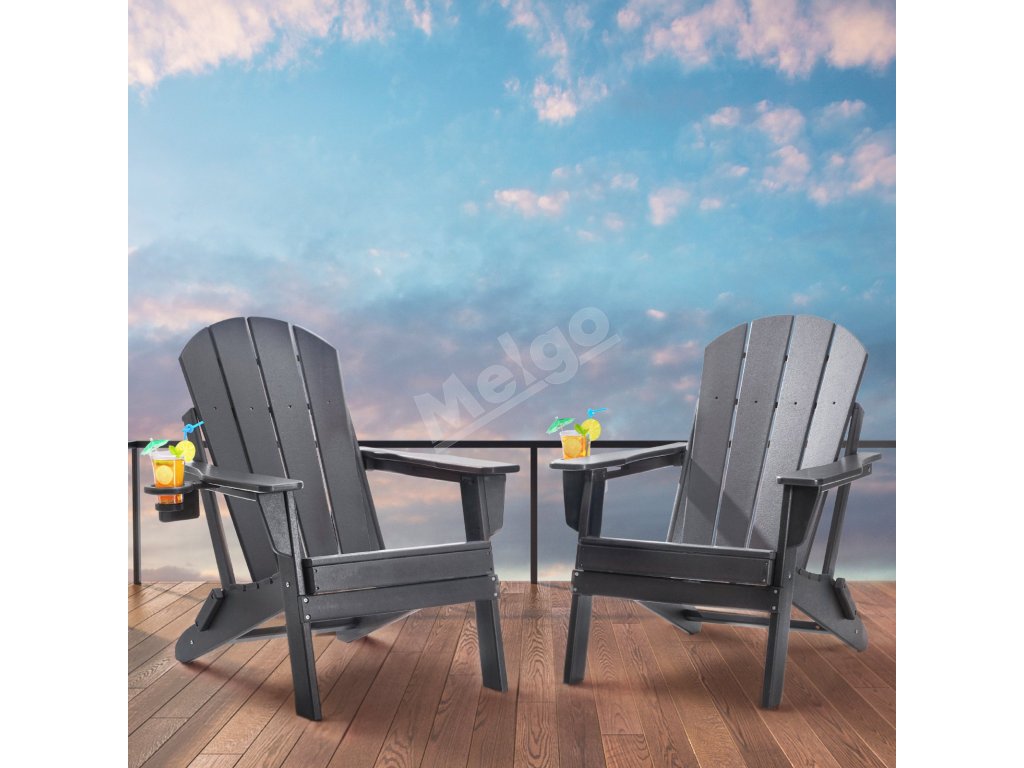 Adirondack stoličky 2 ks plastové skladacie s držiakom na pohár, šedé