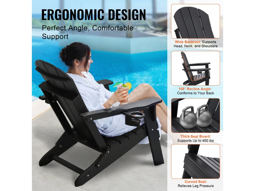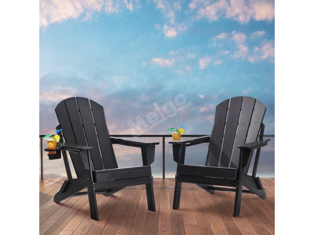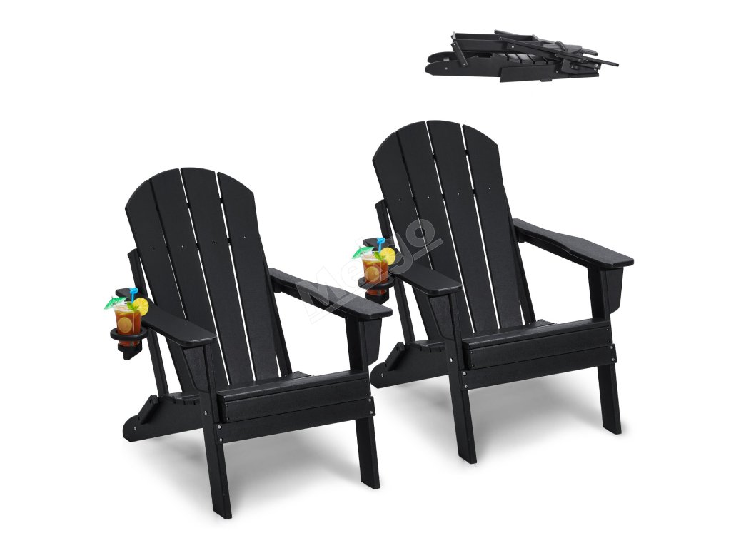 Plastové adirondack stoličky, sada 2, čierne, s držiakom na pohár