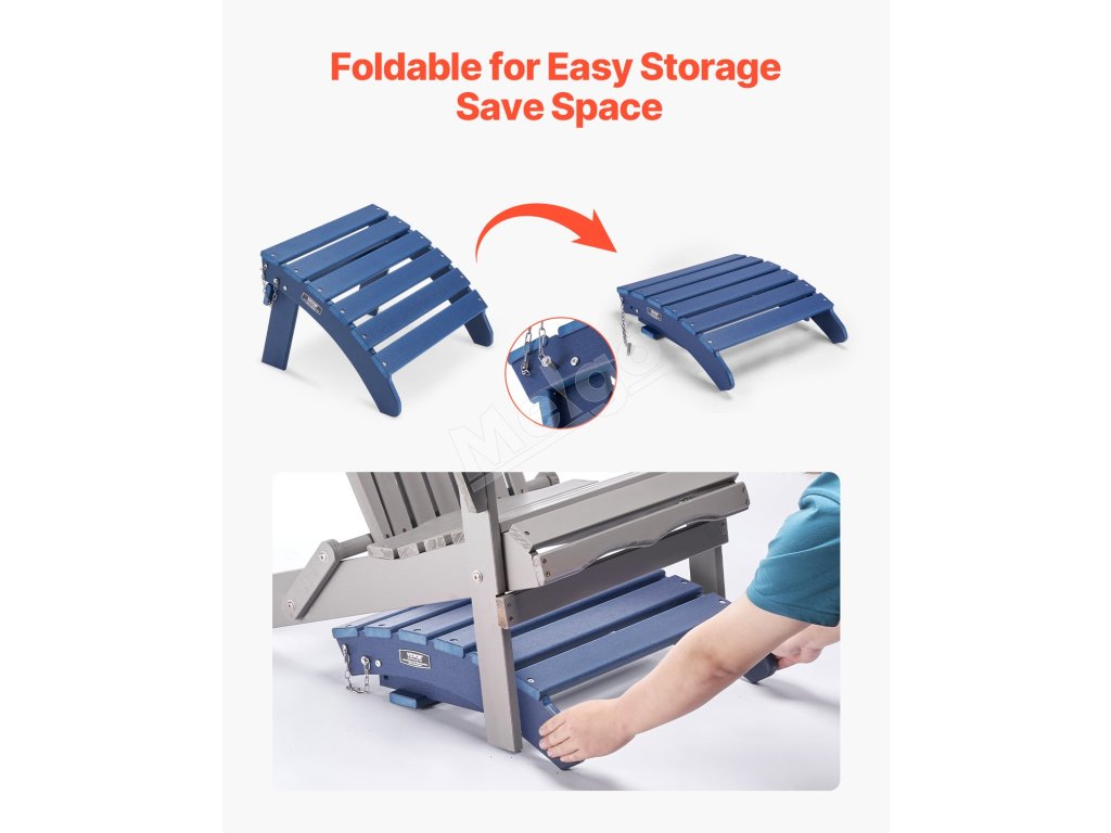 Otoman Adirondack je vyrobený z odolného materiálu HDPE so skrutkami z nehrdzavejúcej ocele 304 odolnými voči korózii. Je skladací na jednoduché skladovanie, inštaluje sa v 4 krokoch a má pohodlnú výšku 13,8 palca s uhlom 43 stupňov. Ideálny na rôzne vonkajšie prostredie.