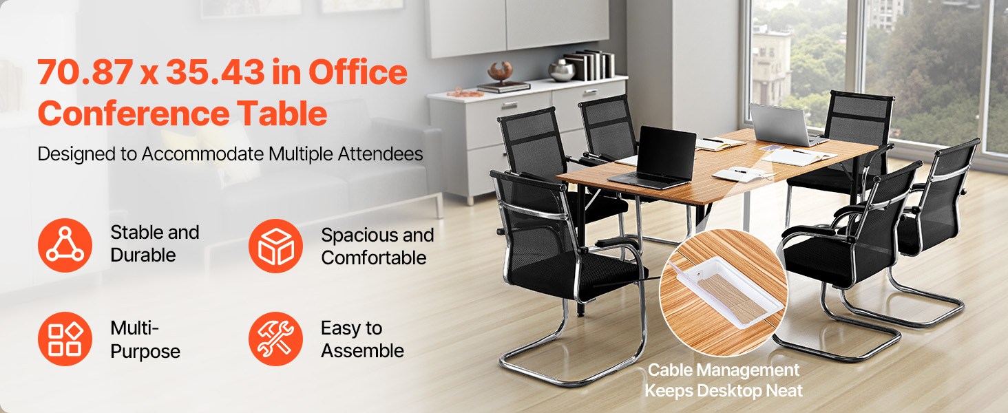 Tento konferenčný stôl so štandardnou 6 ft doskou pohodlne pojme až 6-8 osôb. Vytvára priestranné prostredie na malé alebo stredne veľké stretnutia, stravovanie tímových diskusií, školenia a potreby videokonferencií.