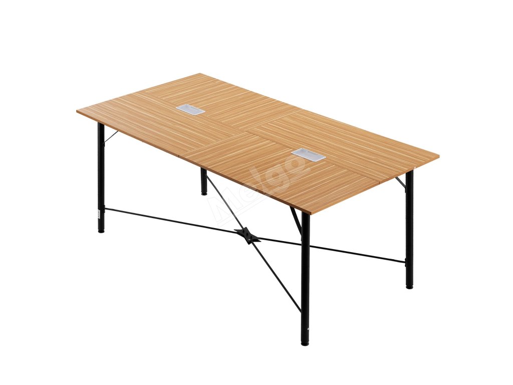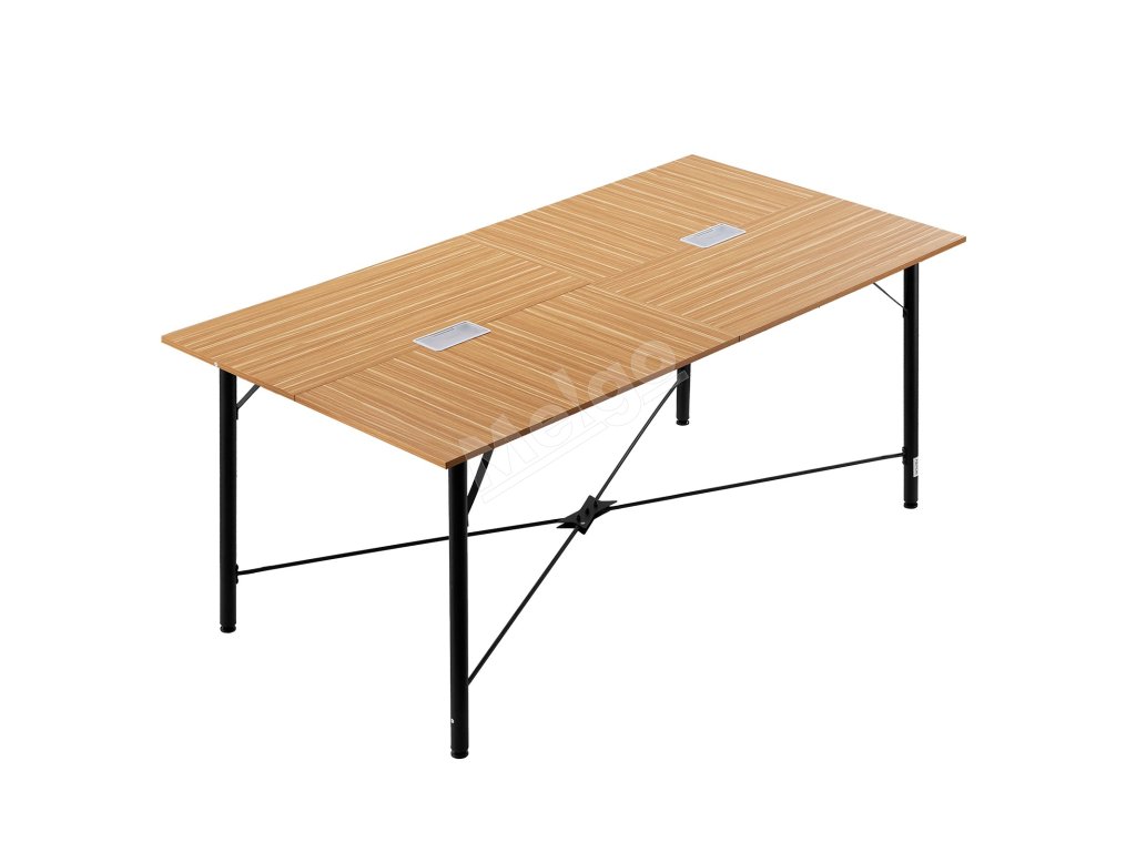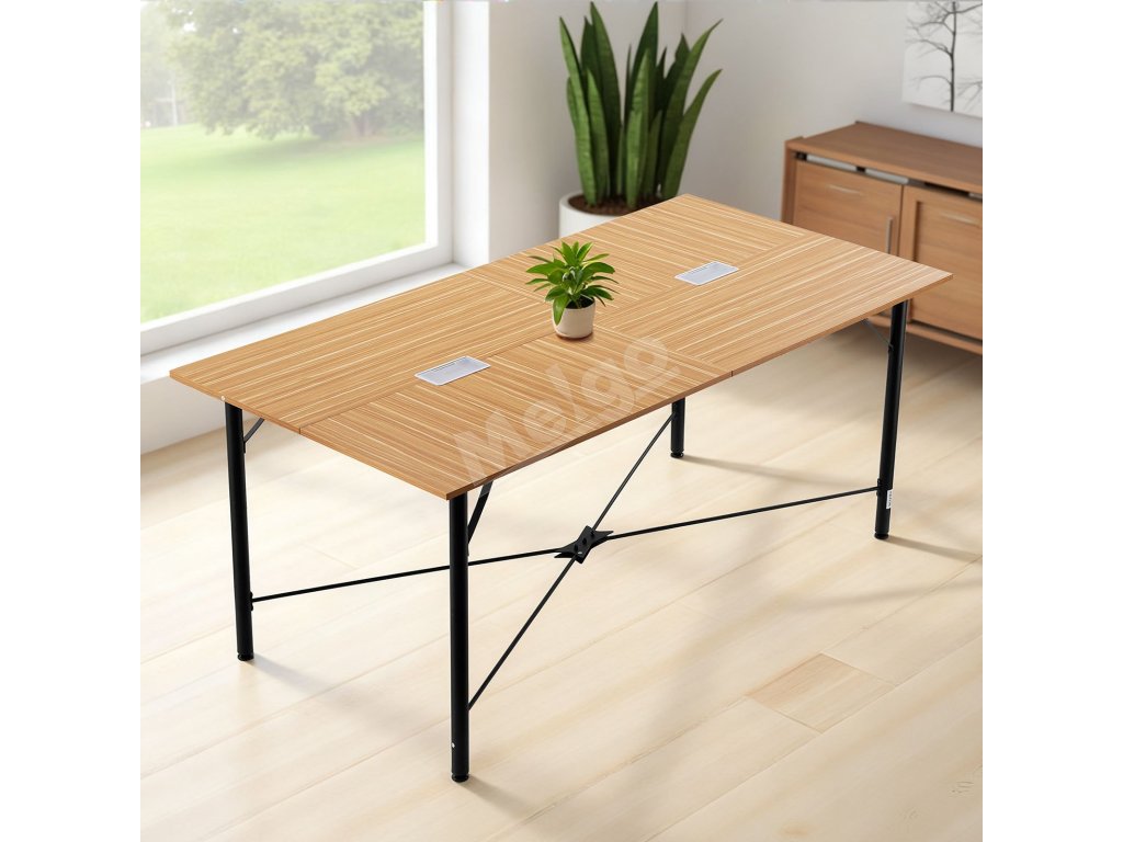 Ideálny pre konferenčné miestnosti, školenia, študijné priestory, kancelárie alebo knižnice. Tento kancelársky rokovací stôl má teplú hnedú povrchovú úpravu so štruktúrou dreva, ktorá sa bez problémov začlení do akéhokoľvek prostredia a spája praktickosť so štýlovým vzhľadom.