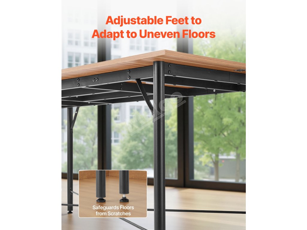 Tento konferenčný stôl, skonštruovaný so zosilnenou stolovou doskou a zosilnenými kovovými nohami, poskytuje vynikajúcu podporu hmotnosti. Pomocné oporné nohy a nastaviteľné podložky pod nohy ho udržiavajú stabilný a nekolísavý, čo zaručuje bezpečné používanie pri rušných stretnutiach.