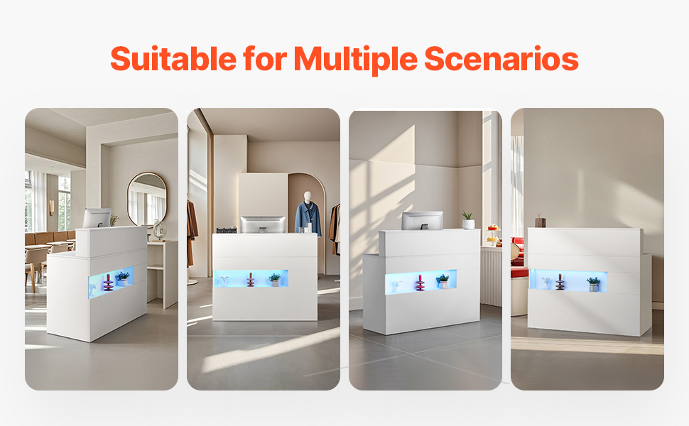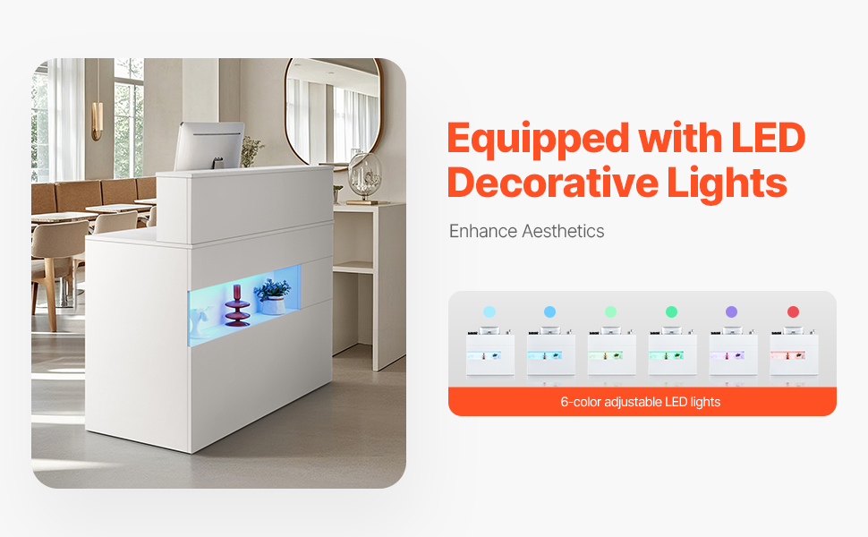 Náš recepčný pultový stôl má elegantný dizajn so zabudovaným LED osvetlením. Tieto svetlá zvyšujú estetický dojem a vytvárajú teplú, príjemnú atmosféru. Zanecháva trvalý prvý dojem a odráža moderný a profesionálny imidž vašej firmy.