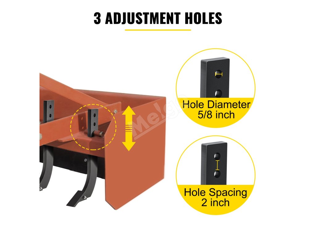 Perfektne sa hodí na pripojenie k väčšine škrabiek, rozrývačov, záhradných a úžitkových traktorov, aby boli vaše práce pri ťahaní efektívne a pohodlné. Môžete ho použiť na vyrovnanie príjazdových ciest, dvorov, polí atď.