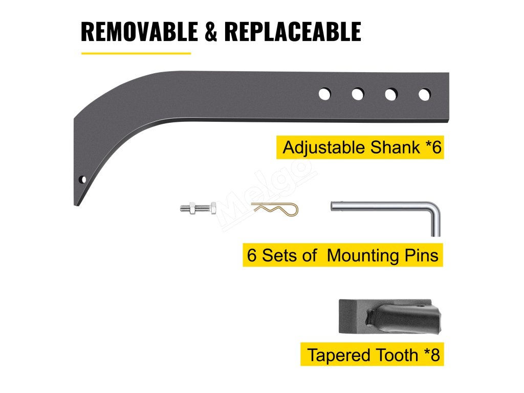 Poskytujeme osem odnímateľných/vymeniteľných zubov na jednoduché kopanie. Zuby sú vyrobené z tepelne spracovanej ocele s dlhou životnosťou na dlhodobé používanie.