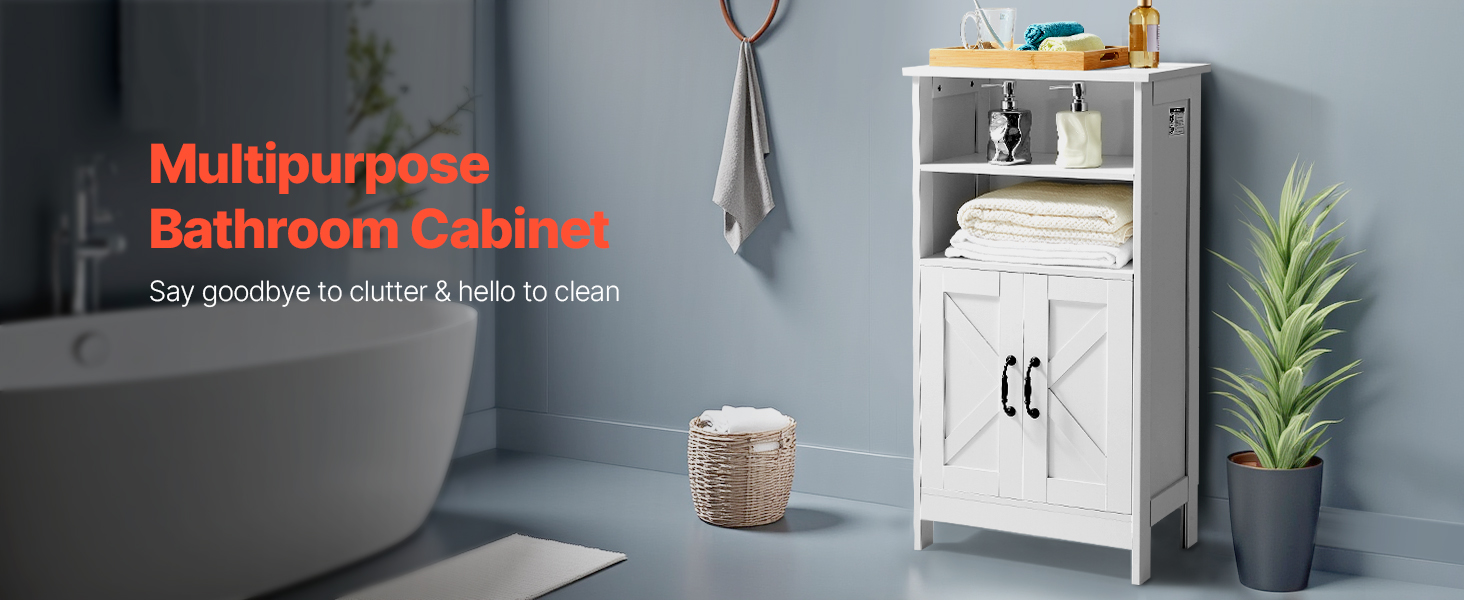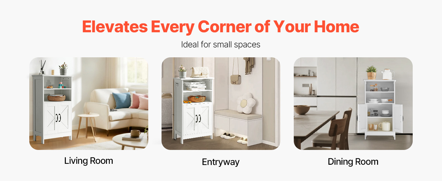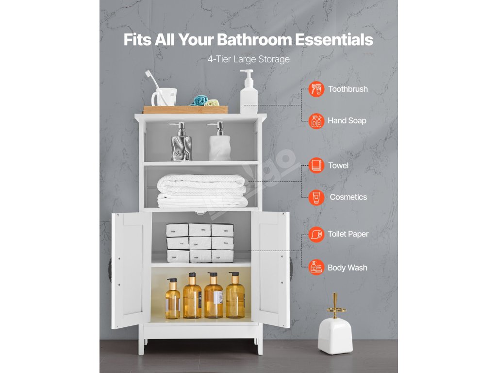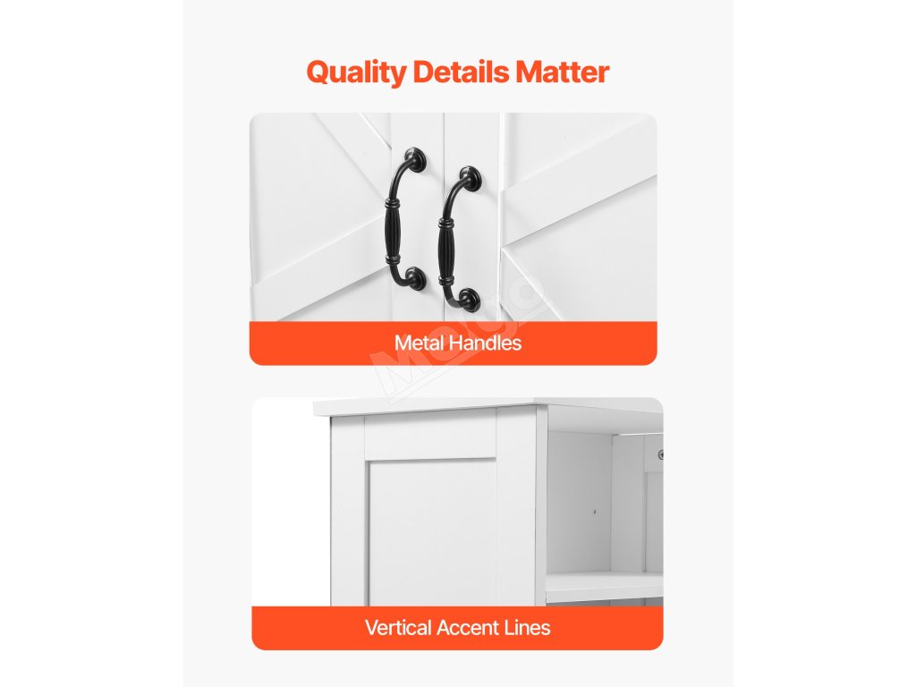 Prednastavené otvory na poličky umožňujú jednoduché nastavenie výšky pomocou 3 úrovní, do ktorých sa zmestia rôzne predmety, ako sú mydelničky, prípravky na starostlivosť o pleť, pracie prostriedky, koše na uteráky a ďalšie. Tento dizajn výrazne zvyšuje funkčnosť našej podlahovej úložnej skrinky do kúpeľne.