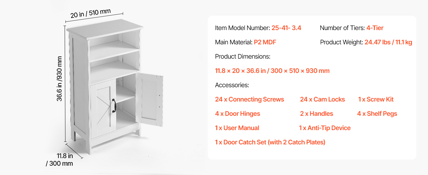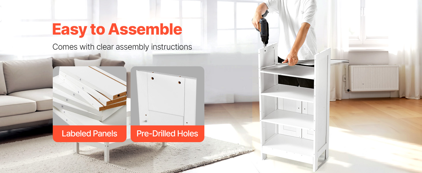 Voľne stojaca kúpeľňová skrinka sa dodáva so všetkým potrebným príslušenstvom a predvŕtanými otvormi, pričom každý diel je jasne očíslovaný, aby bola montáž jednoduchá a prehľadná.