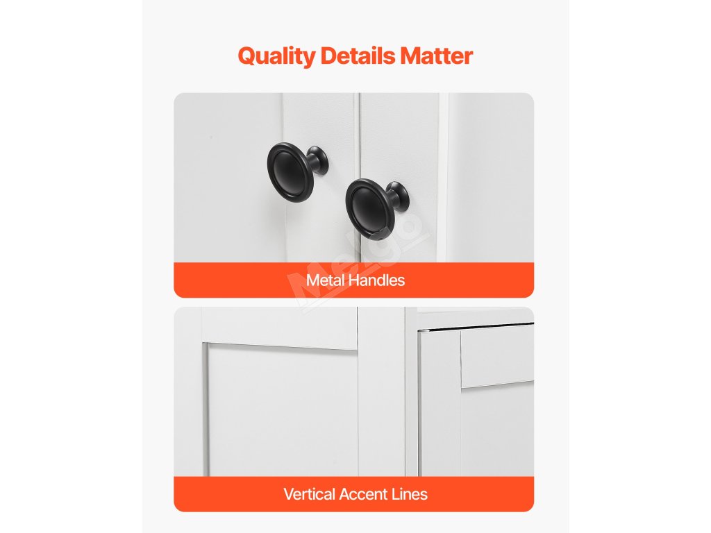 Táto biela kúpeľňová skrinka, vyrobená z prvotriednej MDF dosky P2, je potiahnutá vodoodolnou vrstvou, aby odolala vlhkému prostrediu kúpeľne. Vďaka rovnomernej hustote a pevnej vnútornej štruktúre je MDF pevnejšia a stabilnejšia ako bežné drevo alebo plast, čo zabezpečuje odolnosť bez deformácie alebo praskania.