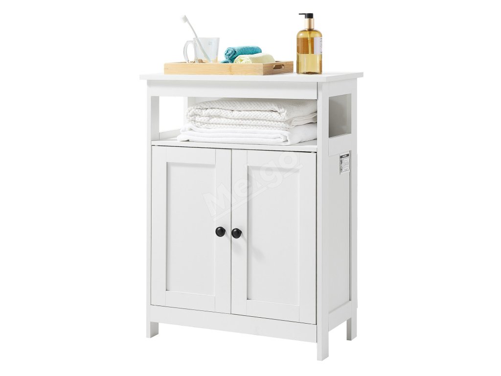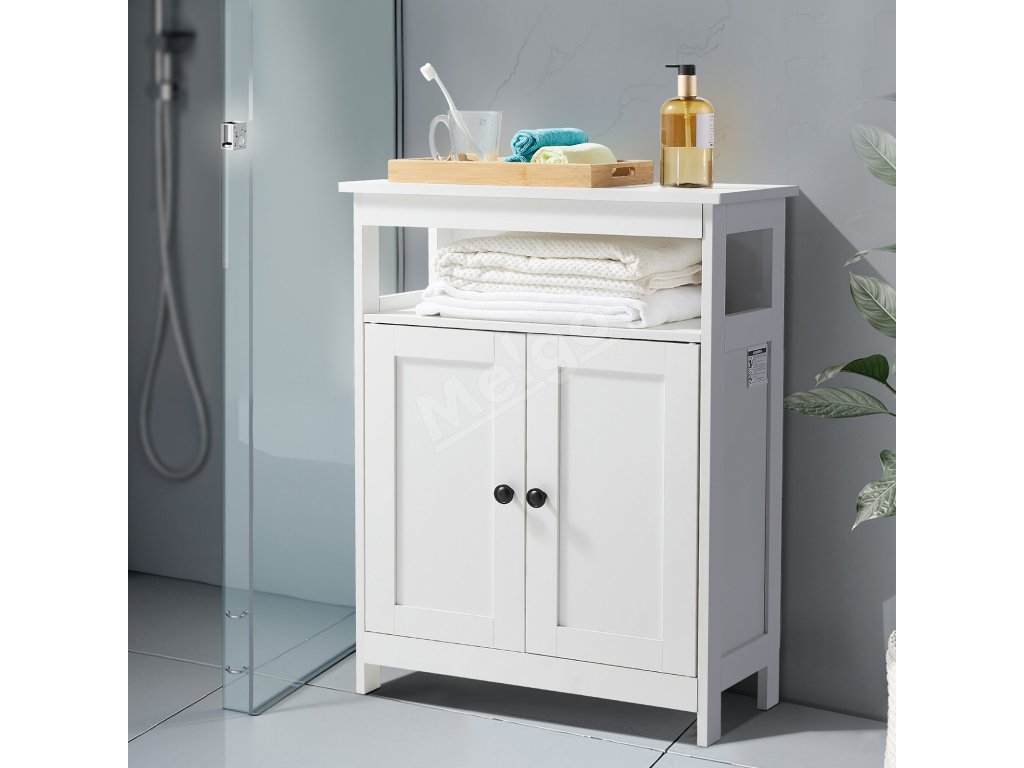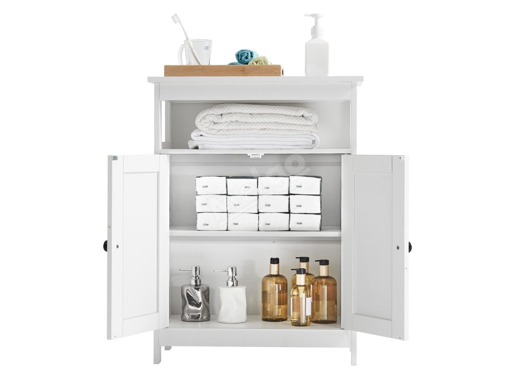 Kúpeľňová skrinka 3-poličková, drevená, 2 dvierka, biela do kúpeľne