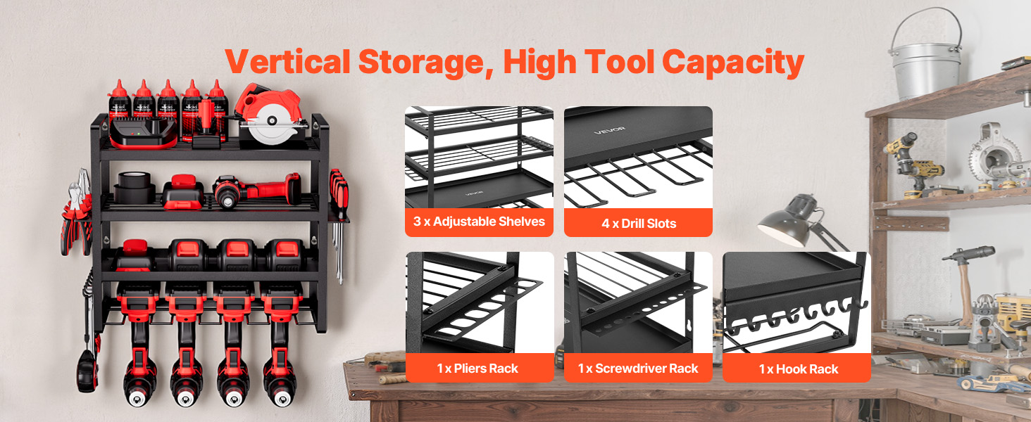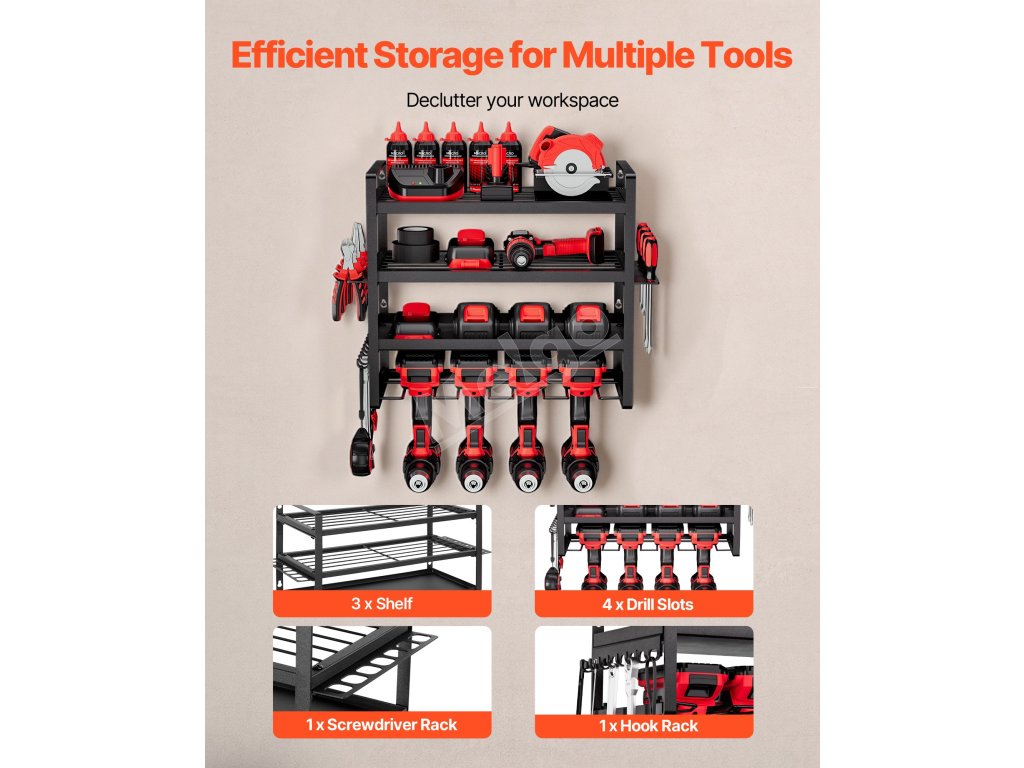 4-úrovňový organizér na elektrické náradie: Udržujte svoje náradie v poriadku a prístupné