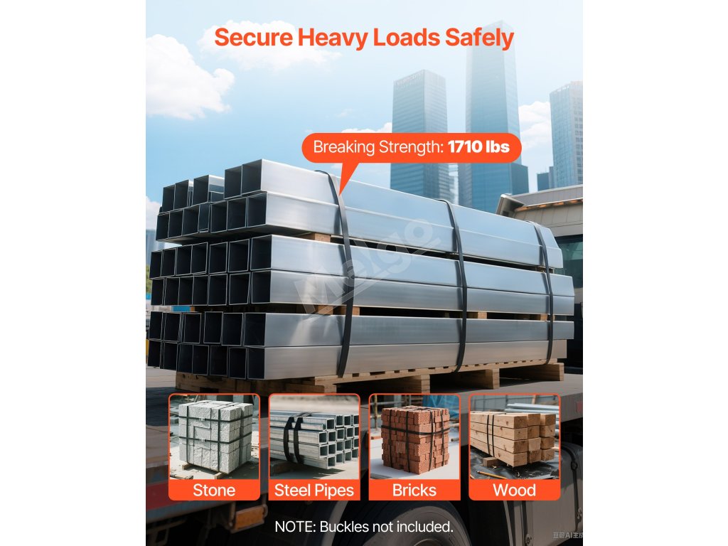 Spolupracuje s prackami na bezpečné popruhovanie rôznych ťažkých nákladov, pričom ponúka vysokú pevnosť v ťahu a odolnosť proti pretrhnutiu. (Pracky nie sú súčasťou balenia)