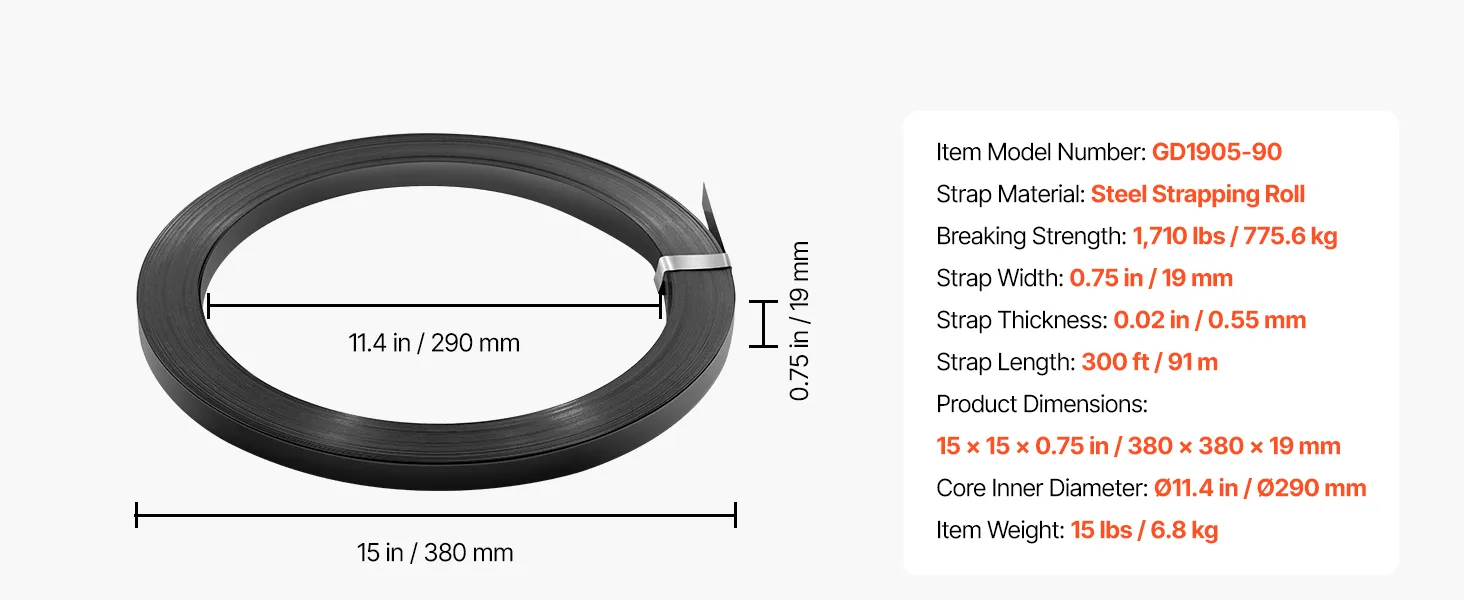 Táto vysokopevnostná rolka oceľovej pásky ponúka pevnosť v tlaku 1710 libier, čo je ideálne na ľahké upevnenie ťažkých predmetov, ako je kameň, oceľové rúry, drevo a tehly.