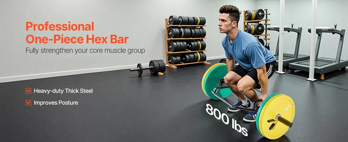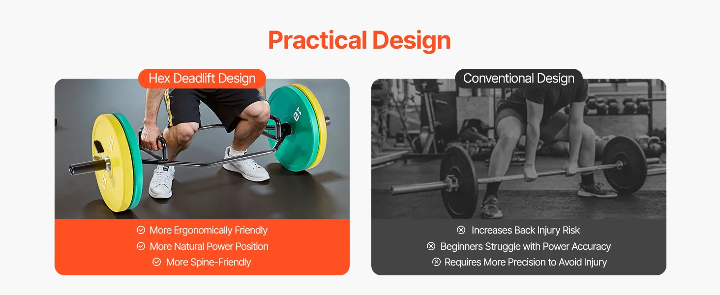 Šesťuholníkový dizajn mŕtveho ťahu je špeciálne vytvorený na zlepšenie držania tela pri zdvíhaní a ochranu chrbtice počas ťažkých zdvihov.