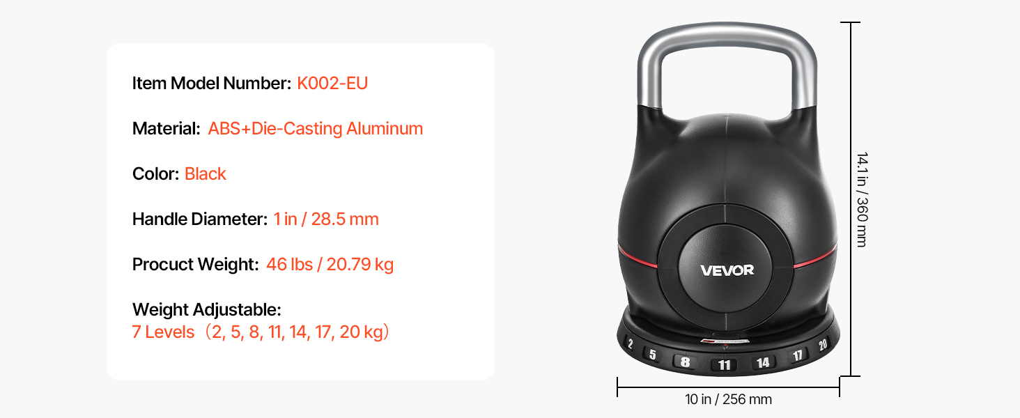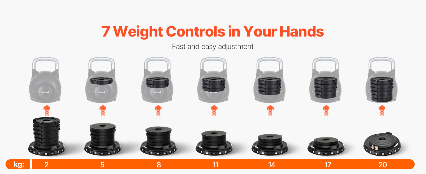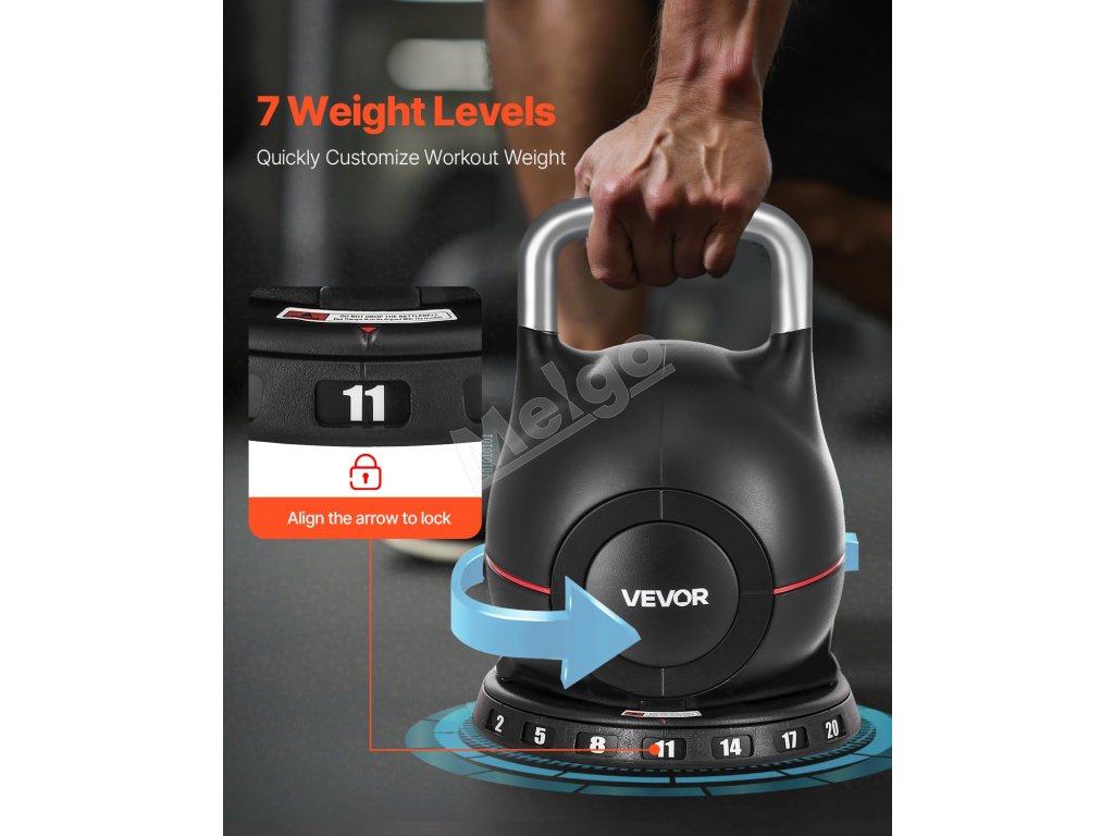 Vďaka siedmim nastaviteľným úrovniam záťaže vám tento kettlebell umožňuje vedecky plánovať tréningy, čím sa zabezpečí, že každé cvičenie bude presné a účinné.
