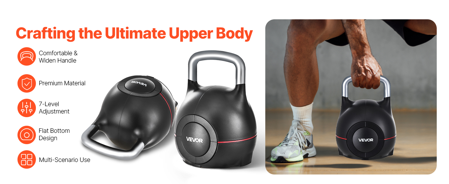 Tento nastaviteľný kettlebell je ideálny na tréning celého tela, ktorý vymodeluje hladké a tónované svaly. Vďaka odolným materiálom, siedmim nastaveniam hmotnosti a priestorovo úspornému dizajnu ponúka efektívne a všestranné cvičenie pre rôzne fitnes ciele.