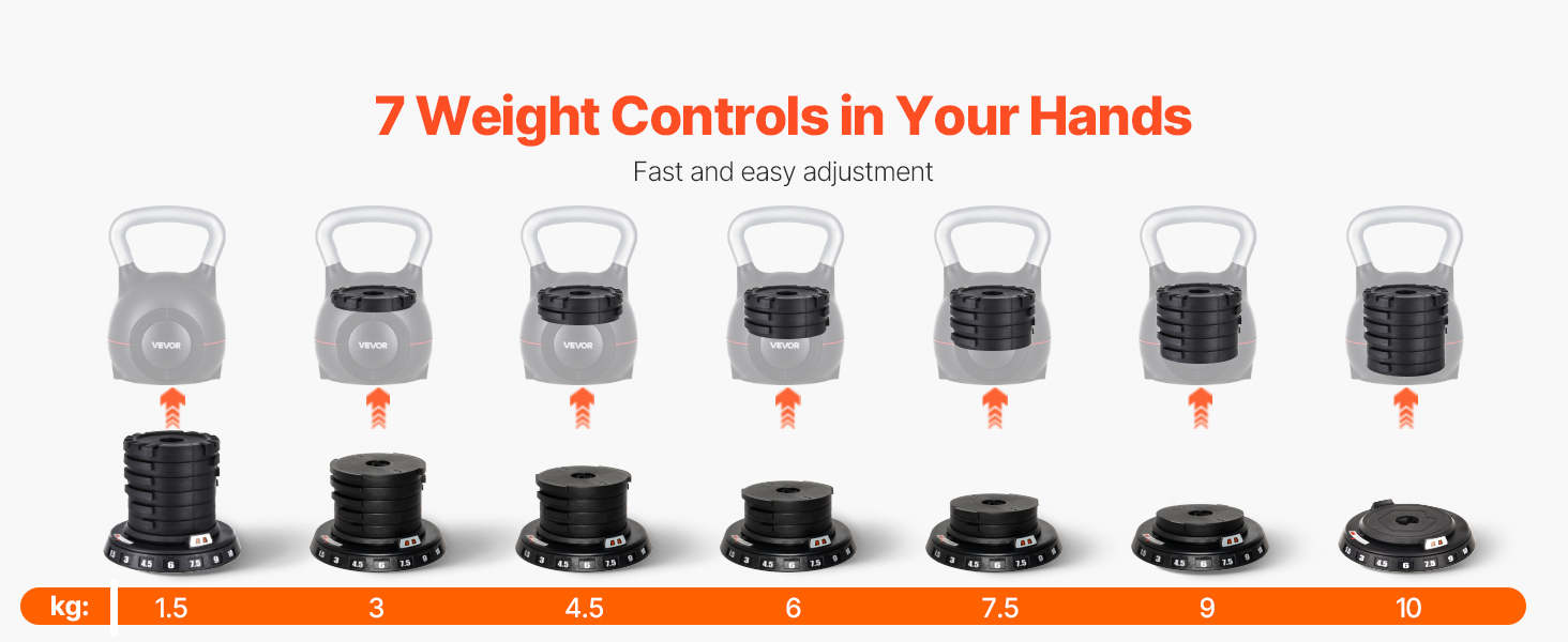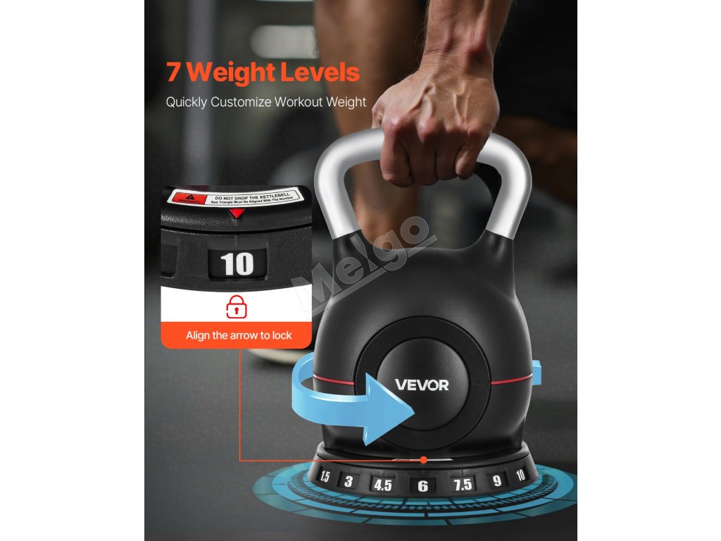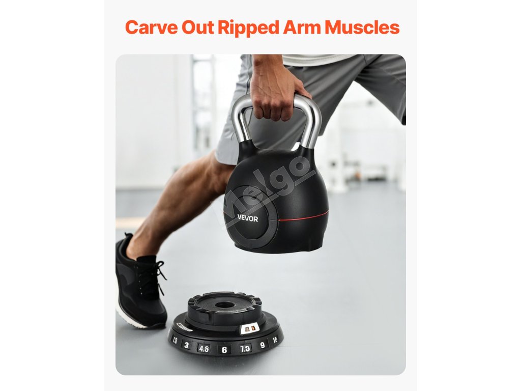 Vďaka siedmim nastaviteľným úrovniam záťaže vám tento kettlebell umožňuje vedecky plánovať tréningy, čím sa zabezpečí, že každé cvičenie bude presné a účinné.
