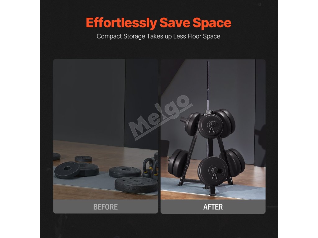 Vďaka kompaktnej konštrukcii tento multifunkčný stojan na záťažové dosky maximálne využíva priestor. Či už v preplnenej garáži alebo v plánovanej domácej posilňovni, efektívne využíva každý centimeter, čím zabezpečuje prehľadné a organizované prostredie na cvičenie.