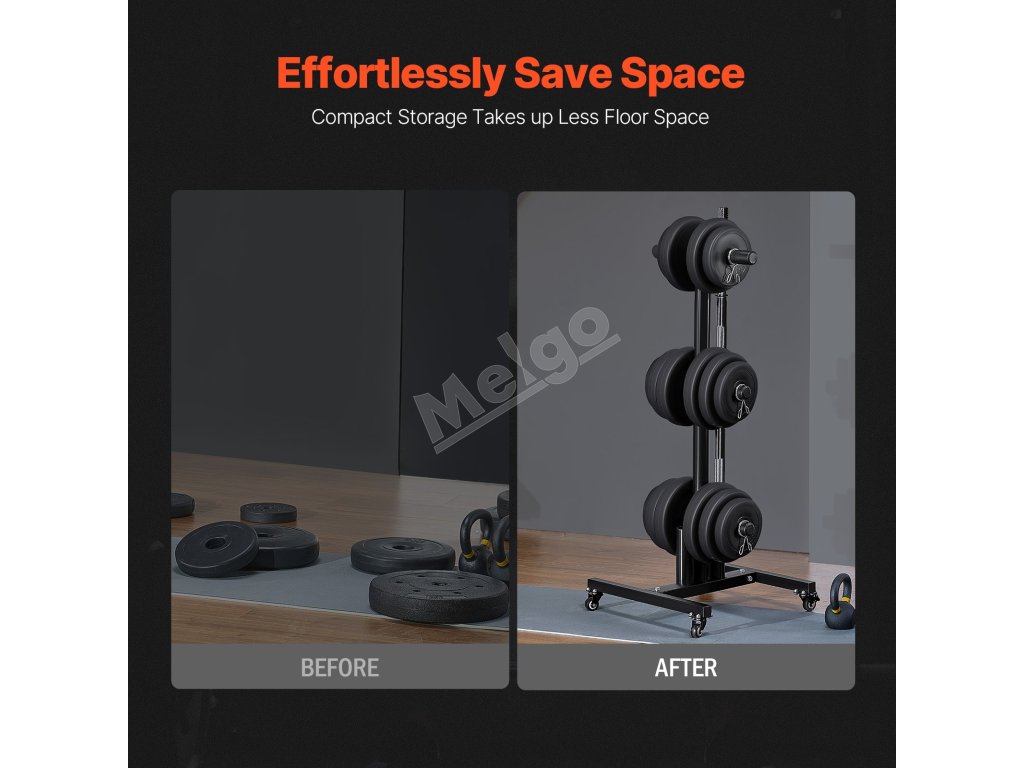 Vďaka kompaktnej konštrukcii tento multifunkčný stojan na záťažové dosky maximálne využíva priestor. Či už v preplnenej garáži alebo v plánovanej domácej posilňovni, efektívne využíva každý centimeter, čím zabezpečuje prehľadné a organizované prostredie na cvičenie.