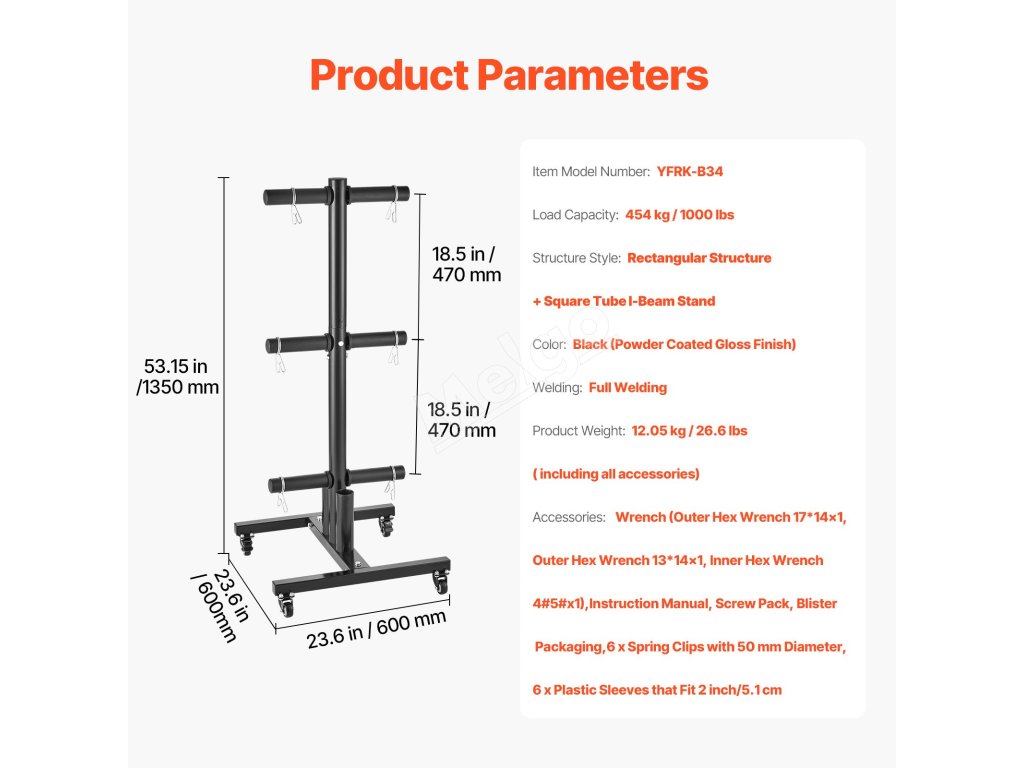 Stojan na olympijské kotúče pre 2-inch, nosnosť 1000 lbs, s kolieskami