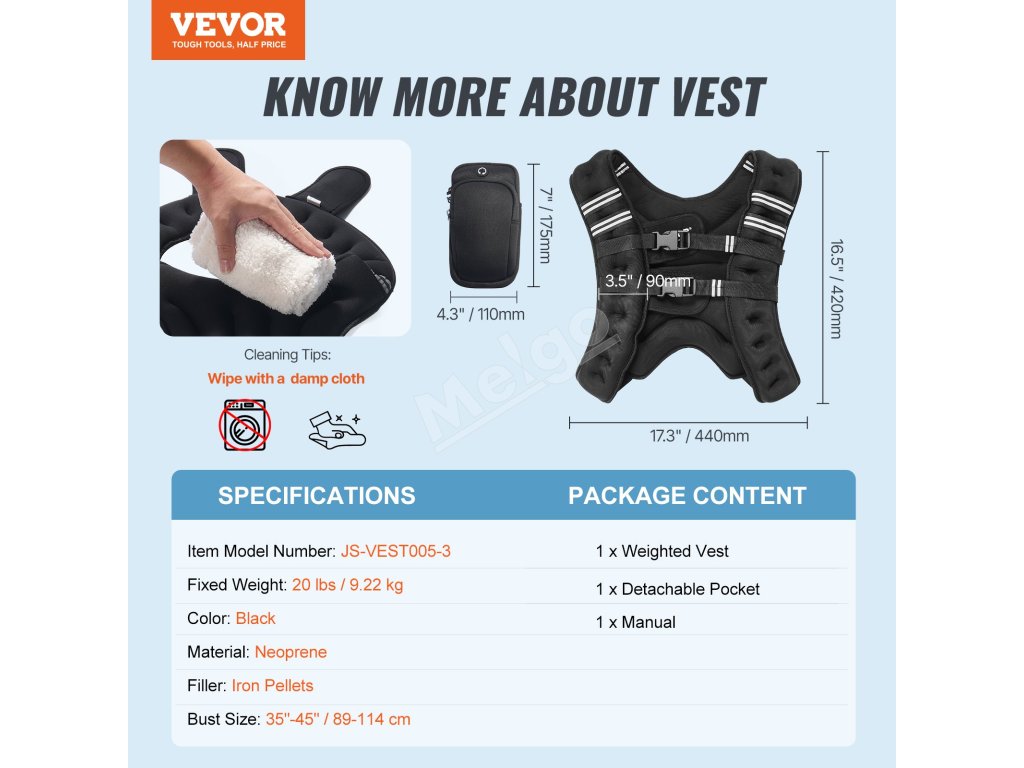Naša vesta s telesnou záťažou je vyrobená z vysokokvalitného neoprénu, je priedušná, odolná voči potu a jemná na pokožku. Je vyplnená stabilnými železnými peletami bez zápachu, ktoré zabezpečujú optimálne rozloženie hmotnosti.