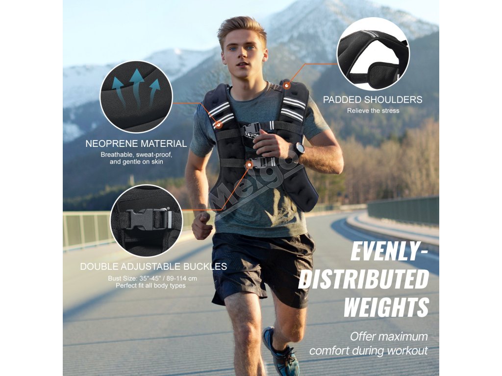 Navrhnuté pre pohodlie, cvičebné pomôcky sú rovnomerne rozložené po celej veste. Polstrované ramená zmierňujú záťaž, čo vám umožní cvičiť bez nepohodlia a napätia.