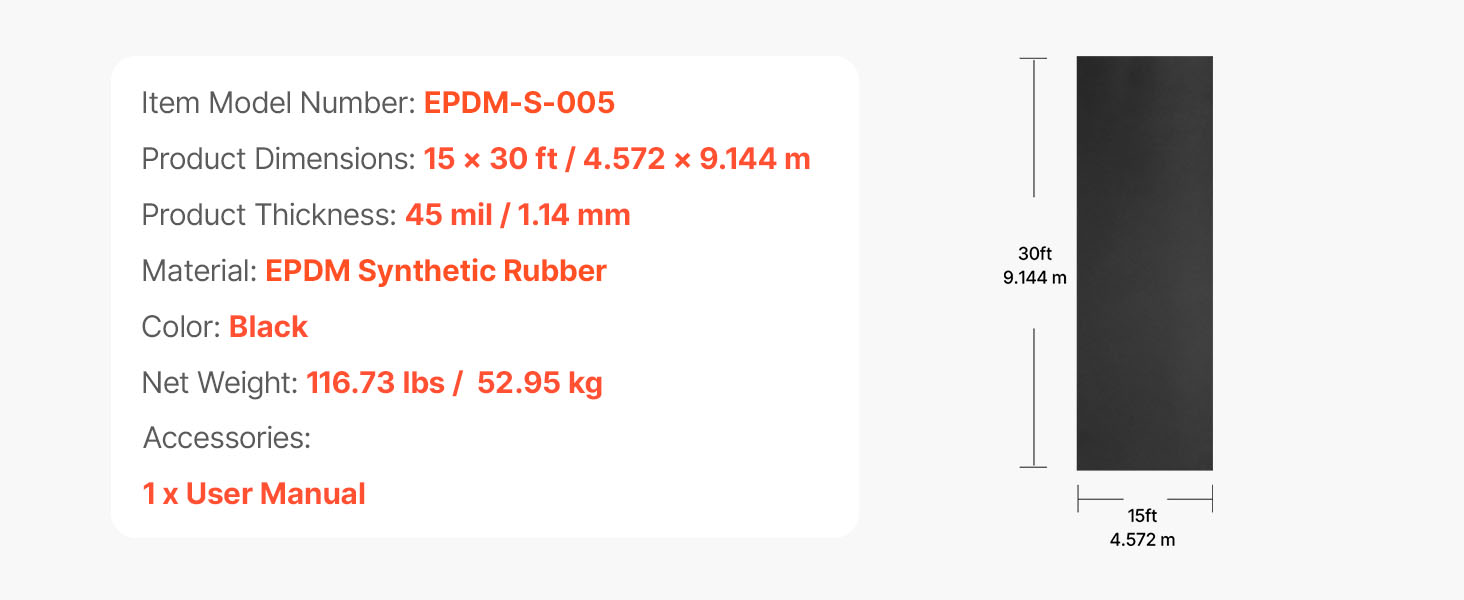 Epdm gumová strešná krytina 45 mil, 15×30 ft, podklad pre strechy